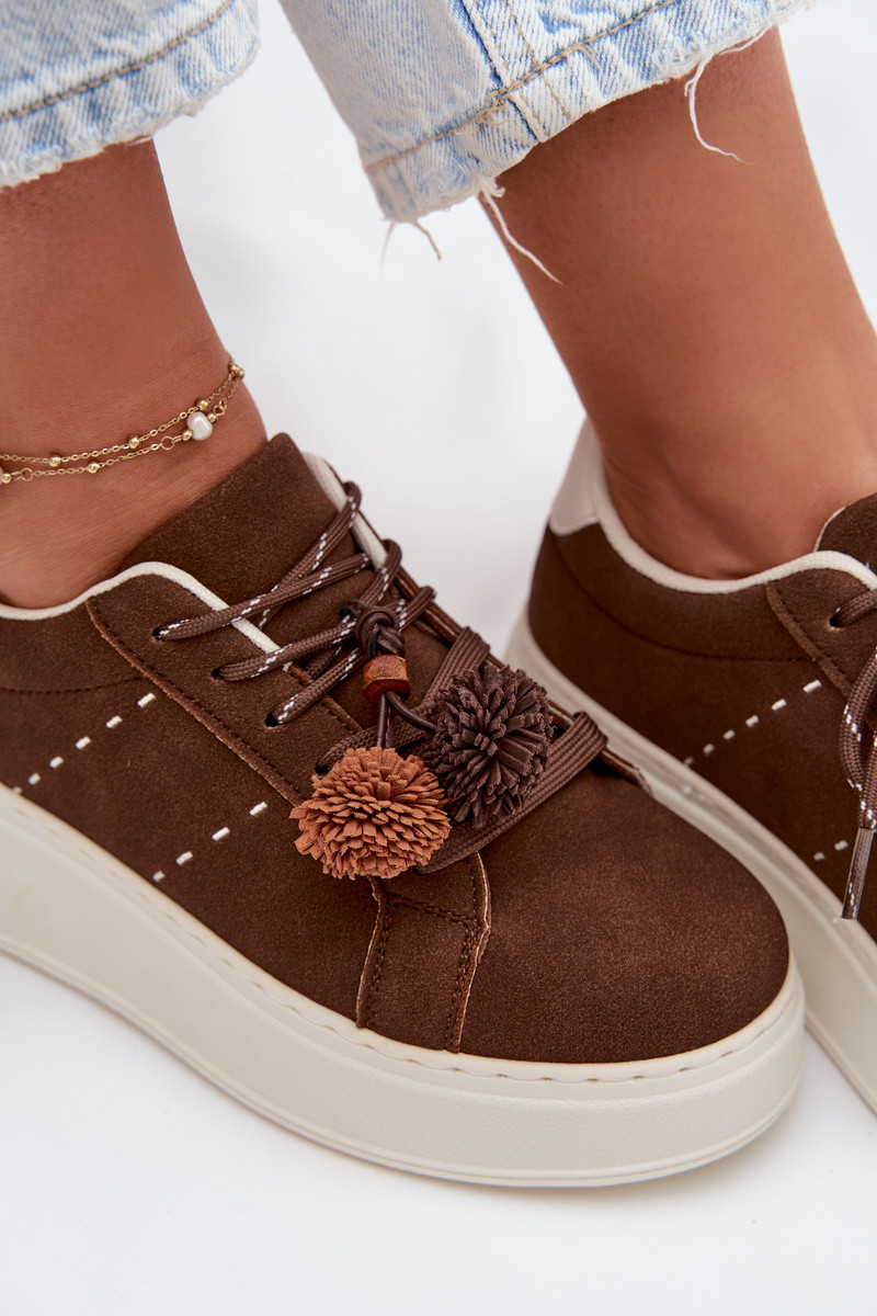 Šokoladiniai Corinna moteriški platforminiai sportiniai batai su puošniais pomponais