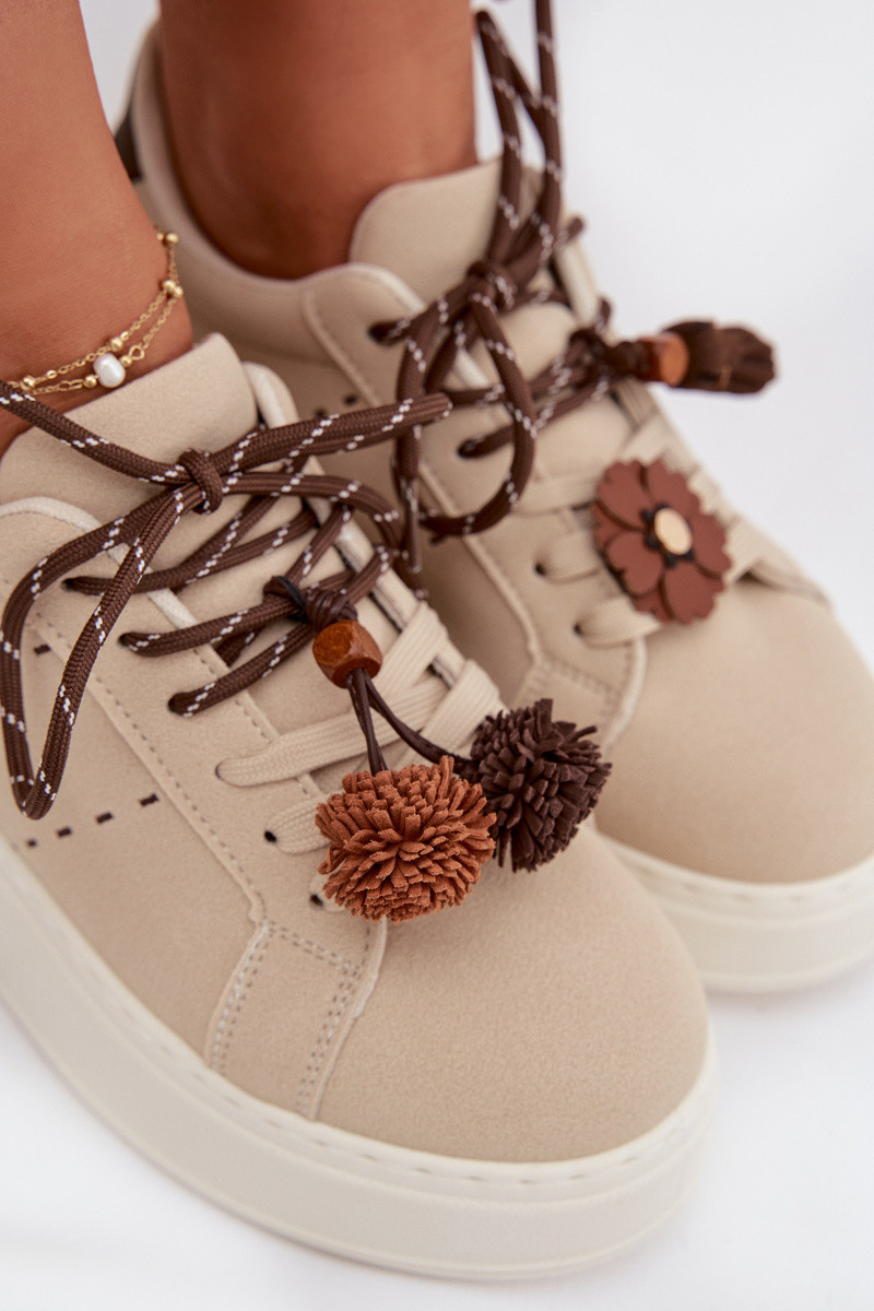 Smėlio spalvos Corinna moteriški platforminiai sportiniai batai su puošniais pomponais