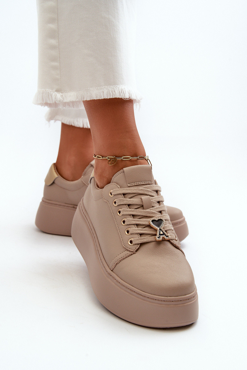 Moteriškas Oda Sneakers modelio batai su platforma smėlio spalvos Vinceza 66700