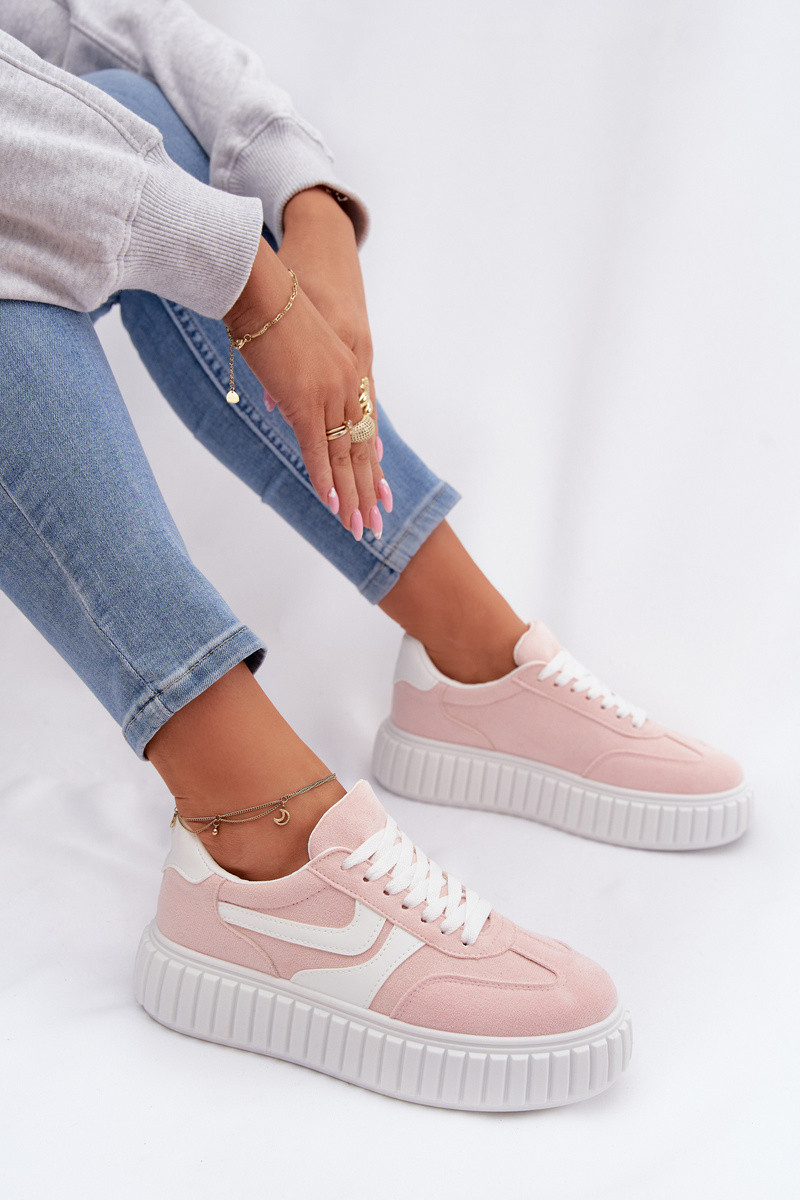 Sportbačių modelio batai moteriški su platforma iš dirbtinio zamšo rožinės spalvos Cadrina