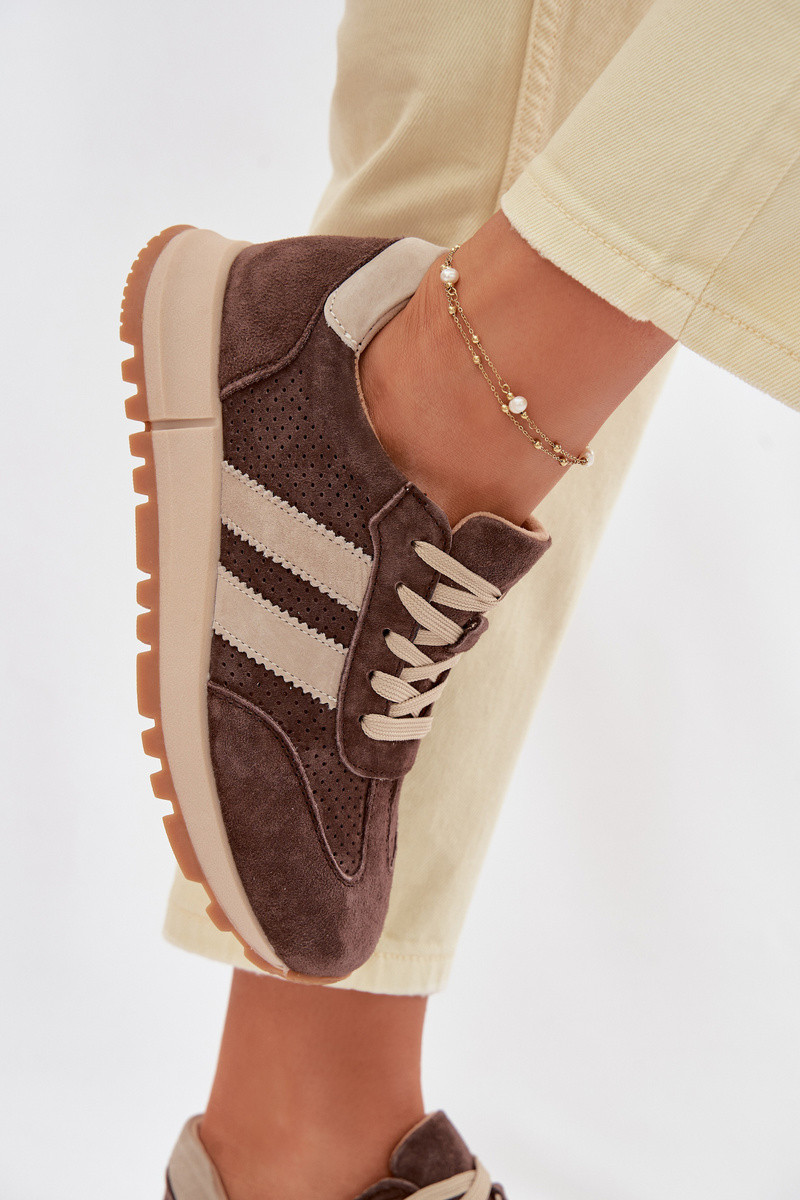 Moterų sportbačiai iš dirbtinės odos rudos spalvos