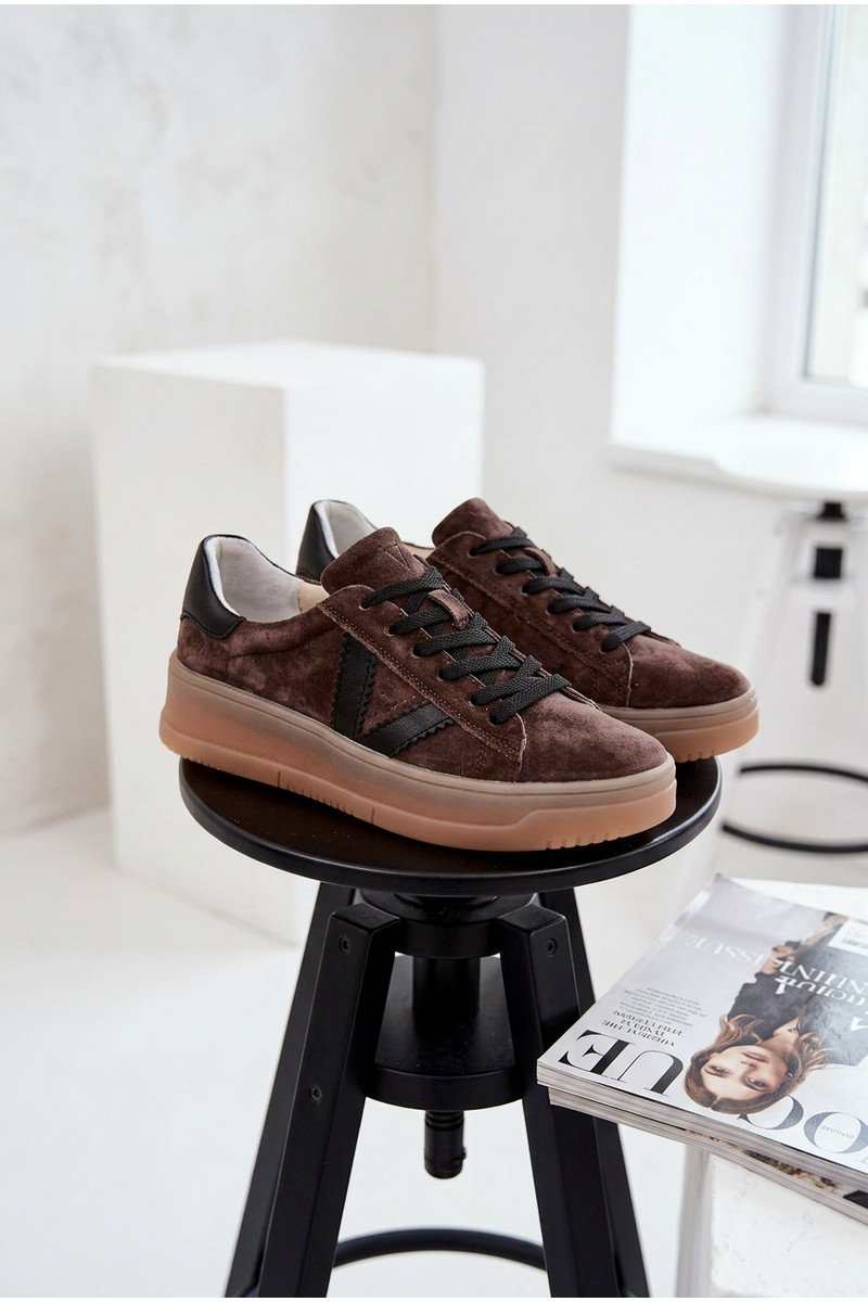 Moteriški sportinio stiliaus batai iš natūralios zomšos su platforma Vinceza 79597 rudos spalvos