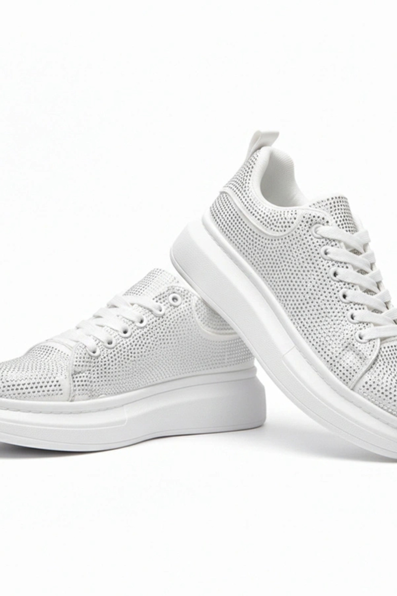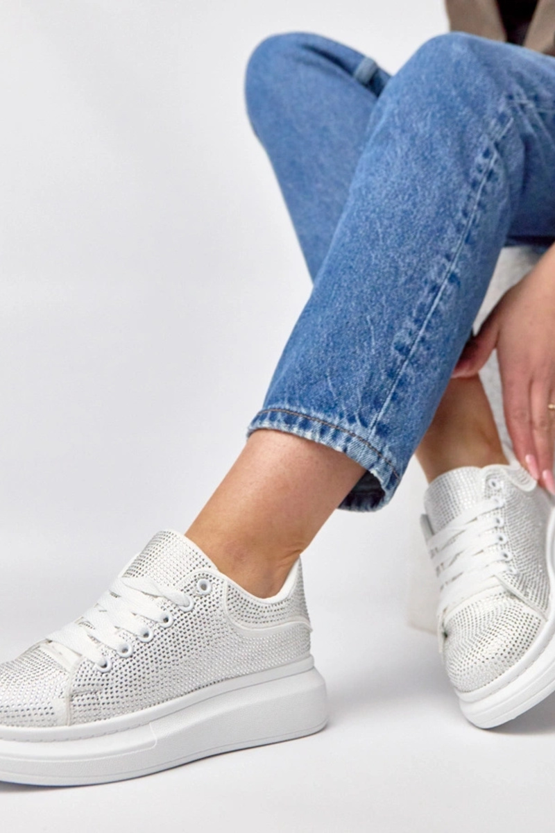 Balti sportbačiai platformoje puošti cirkoniais Rosalie