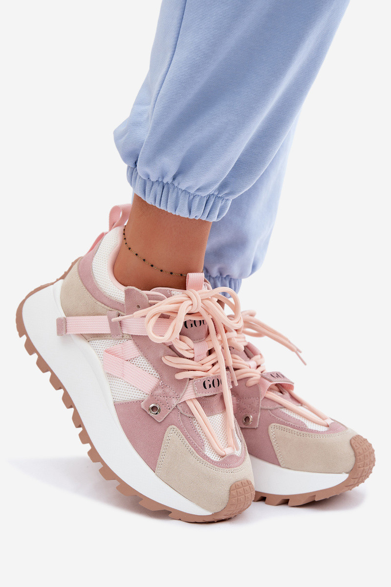 Rožiniai zomšiniai moterų sportiniai bateliai su platforma GOE TT2N4022