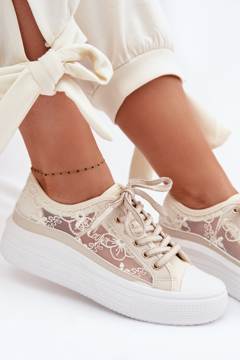 Laisvalaikio bateliai su nėriniais su platforma Lee Cooper LCIN-26-44-4481 smėlio spalvos