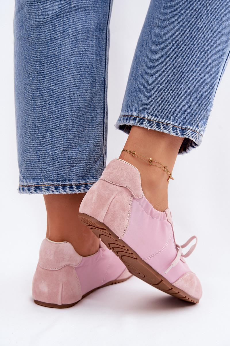 iš zomšos Sneakers modelio batai Žemos moteriškos Big Star TT274600 rožinės spalvos
