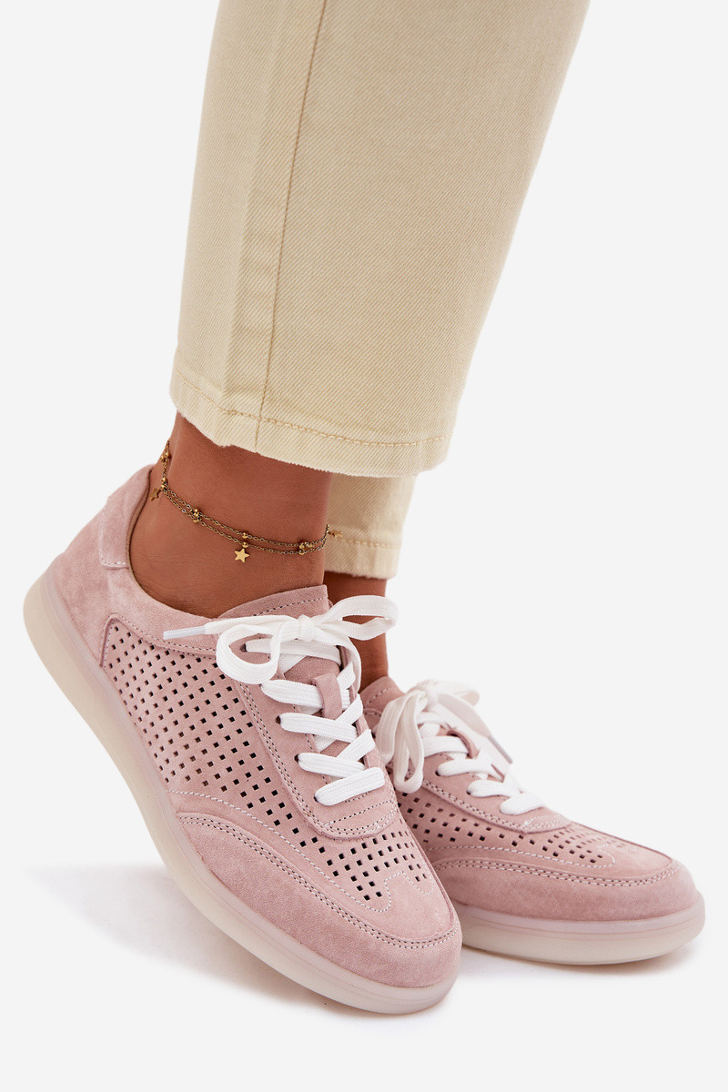 Oda iš zomšos Sneakers modelio batai Moteriškas su aužūro elementais rožinės spalvos Almora