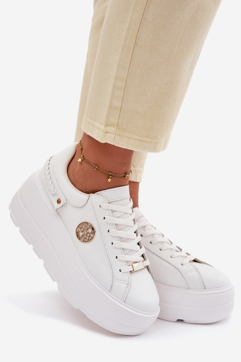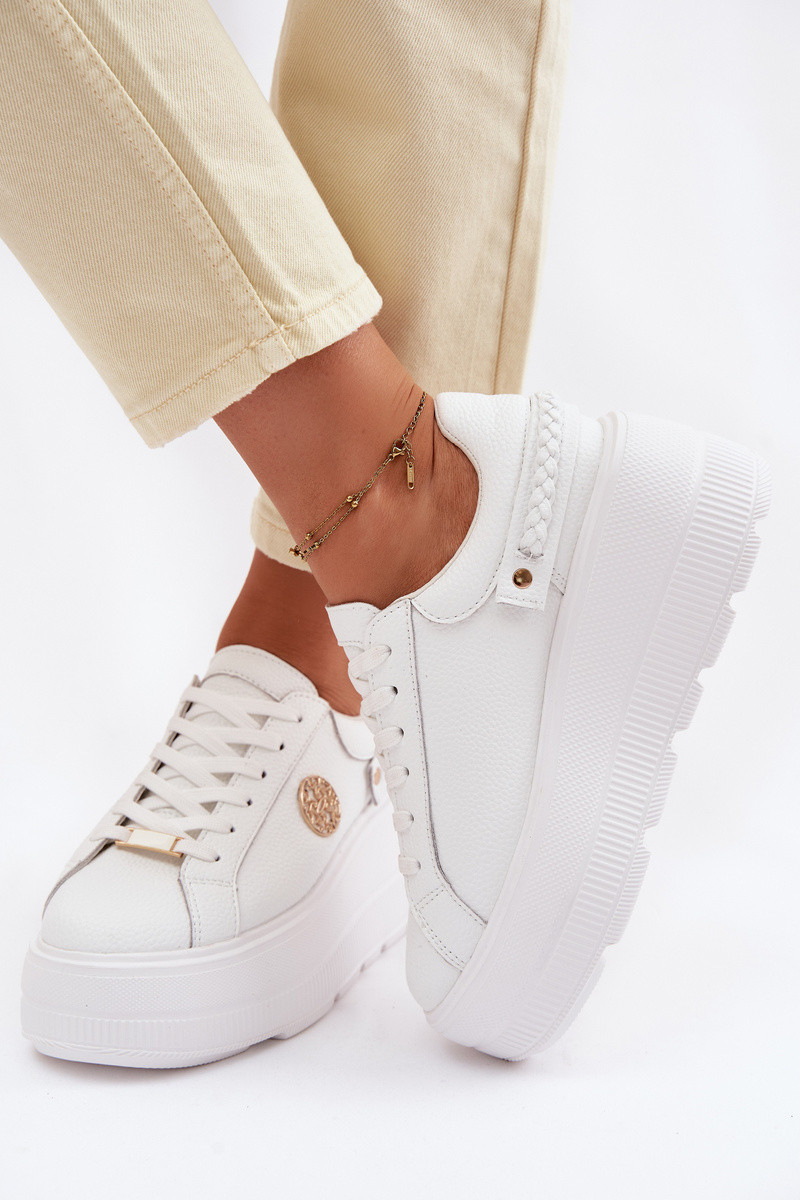 Odiniai sportbačiai moteriški su platforma D&A LR61-7095 baltos spalvos