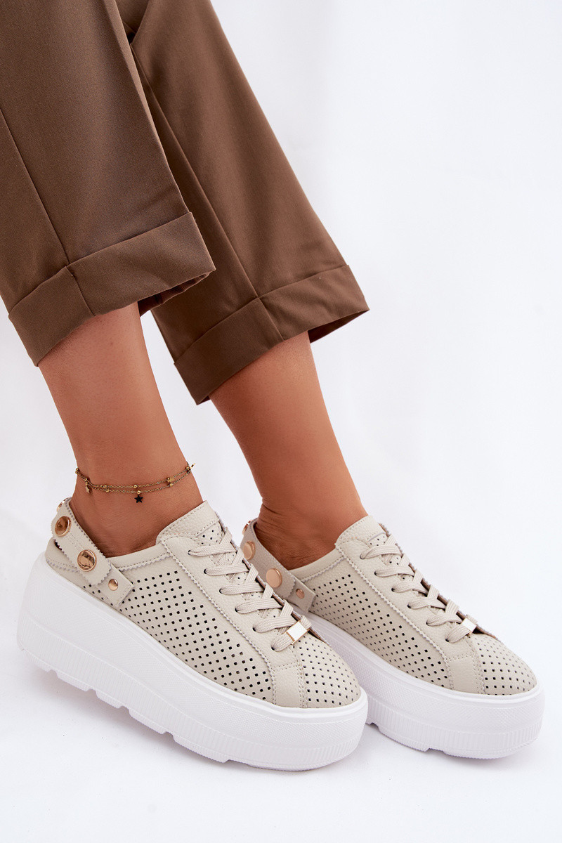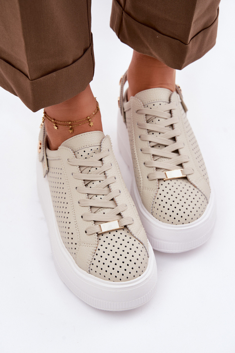 Odiniai sportbačiai su ažūriniais elementais moteriški su platforma ir dirželiais D&A LR61-7088 smėlio spalvos