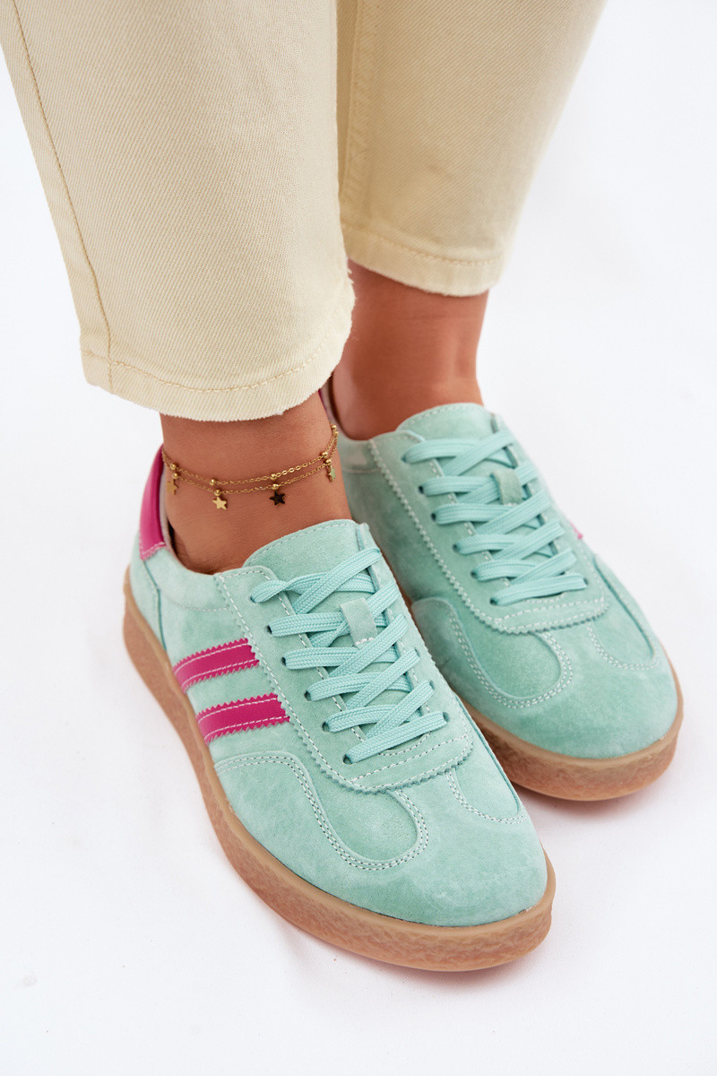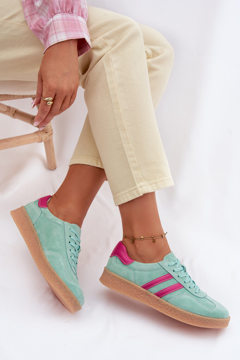 Oda iš zomšos Sneakers modelio batai Moteriškas S.Barski LR61-7089 mėtinės spalvos