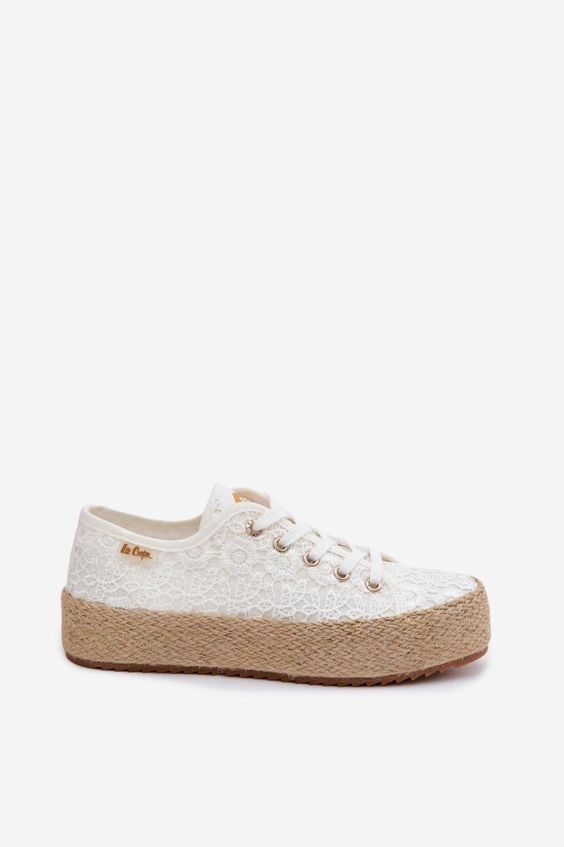 su nėrinių motyvais laisvalaikio batai espadrilės su platforma Lee Cooper LCIN-26-31-4326 baltos spalvos