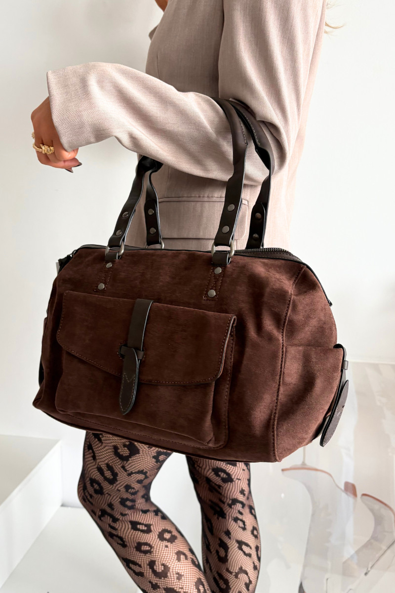 Rankinė iš dirbtinio zomšo šokoladinė Gressa