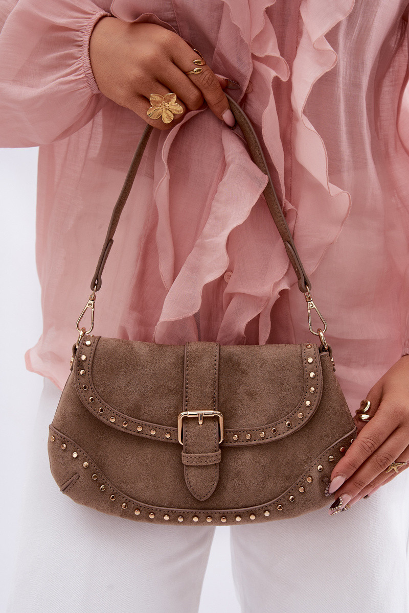 Rankinė su kniedėmis iš dirbtinio zomšo ryškaus smėlio spalvos Clarielle