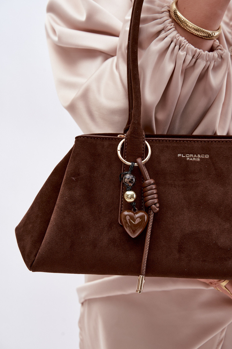 Rankinė iš dirbtinio zomšo su pakabukas šokolado spalvos Nelina