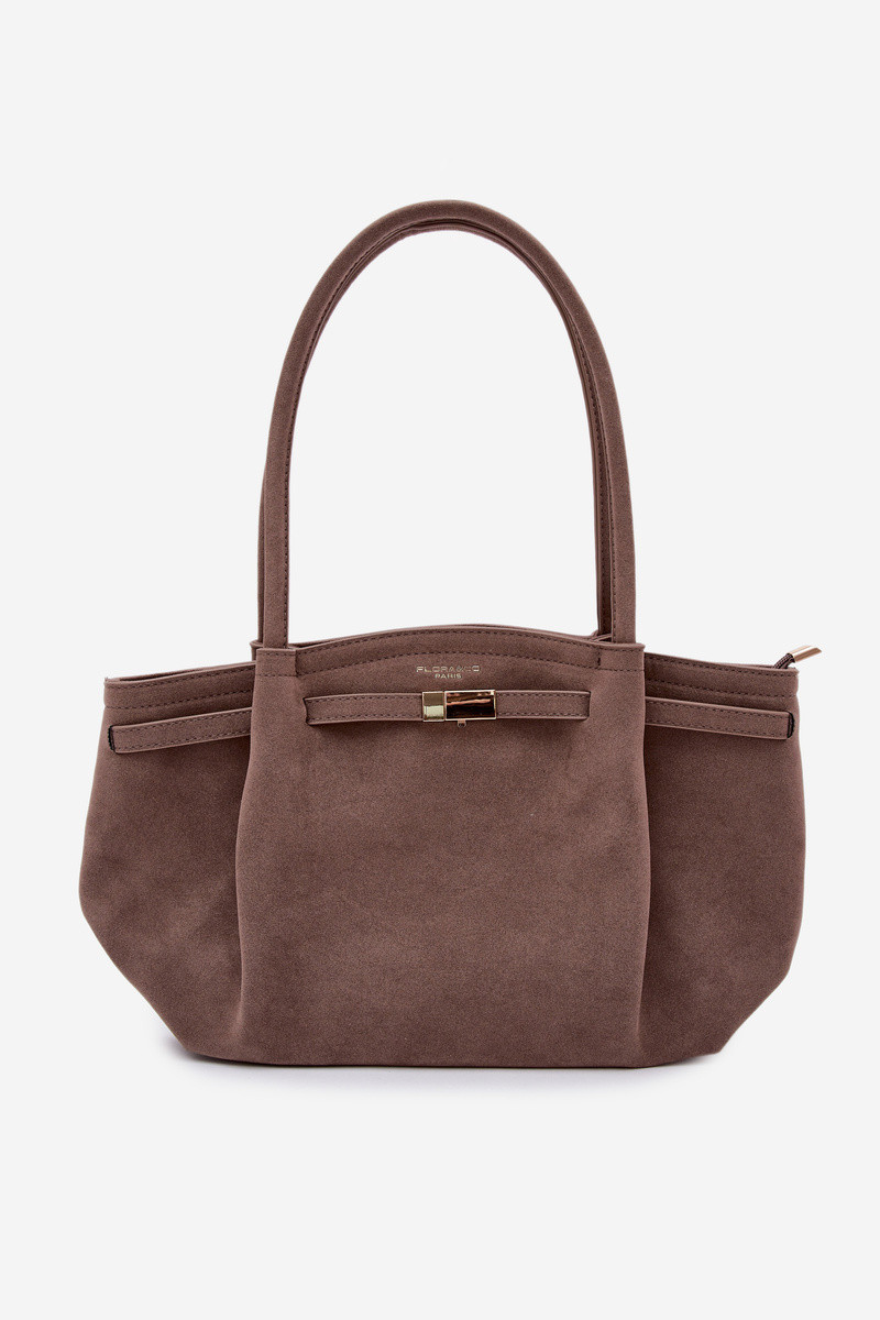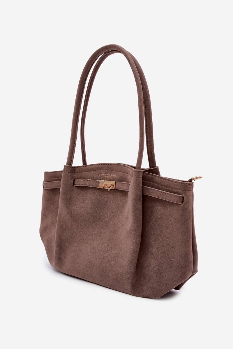 Shopper tipo rankinė iš dirbtinio zomšo tamsaus smėlio spalvos Elleea