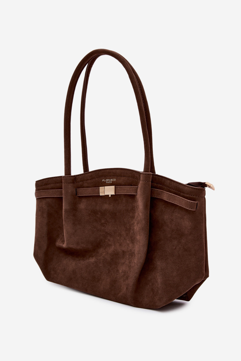 Shopper tipo rankinė iš dirbtinio zomšo šokolado spalvos Elleea