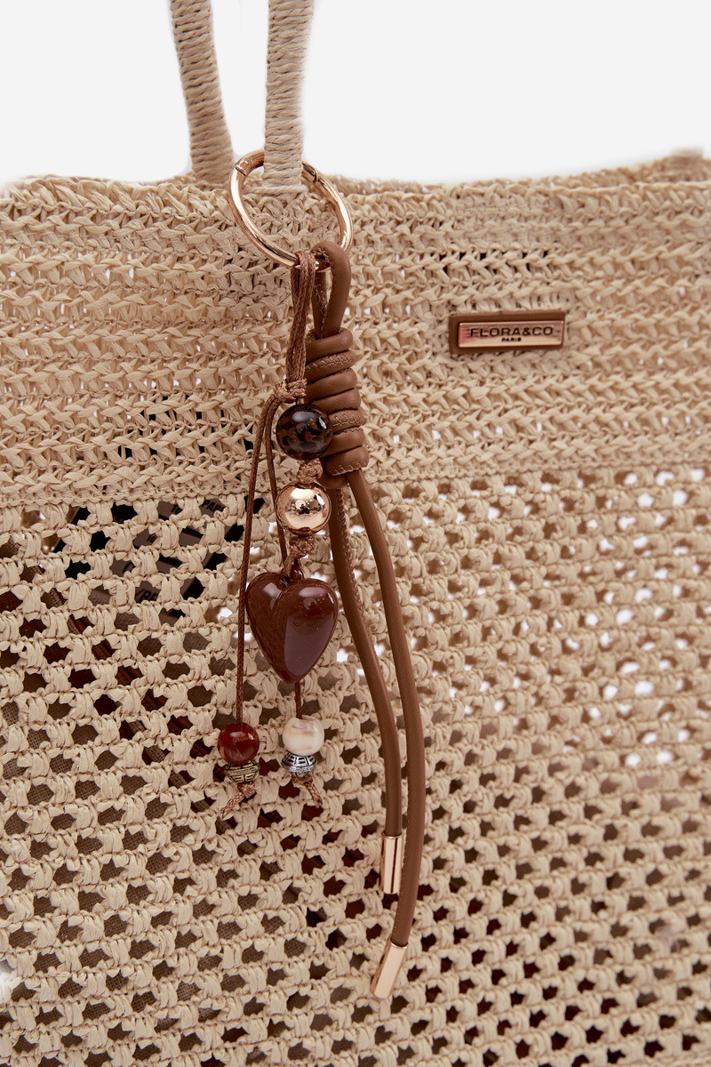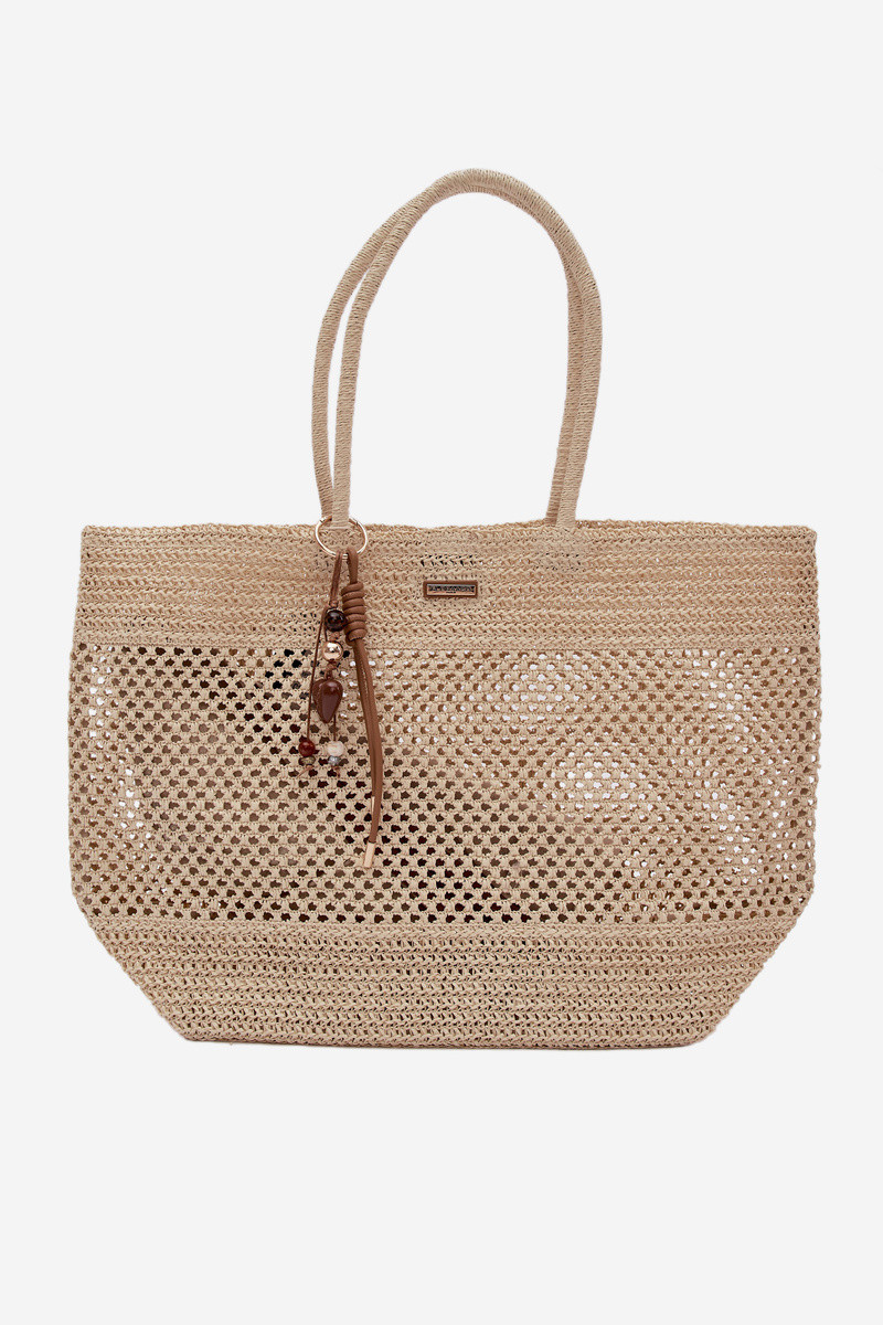 Pinta rankinė shopper didelė su pakabukeliu dramblio kaulo spalvos Lucette