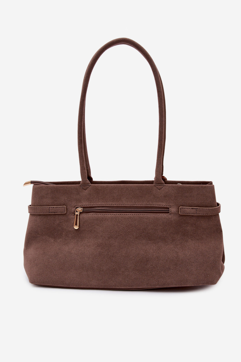Rankinė su dirbtinio zomšo imitacija su užtrauktuku tamsaus smėlio spalvos Noellea