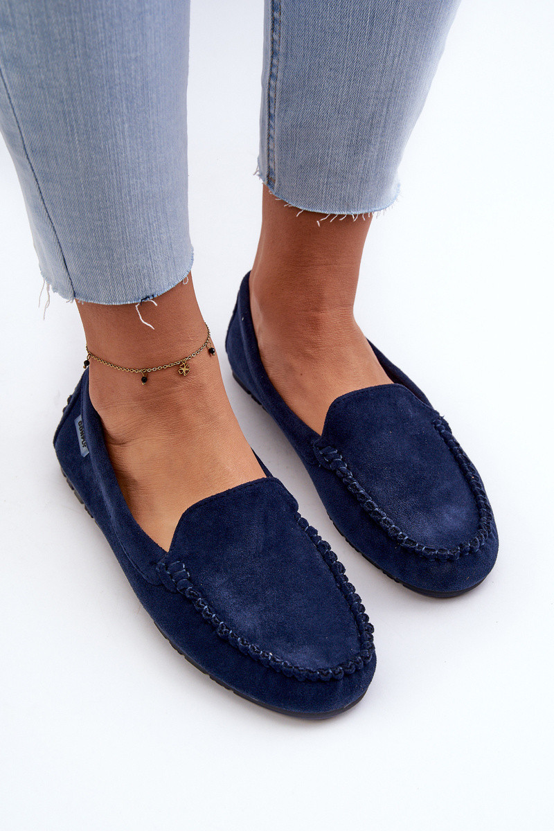 Moteriški dirbtinės zomšos mokasinai, tamsiai mėlyni Amrutia