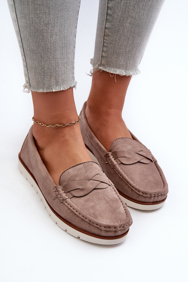 Moteriški dirbtinės zomšos mokasinai, tamsiai smėlio spalvos Nestalia