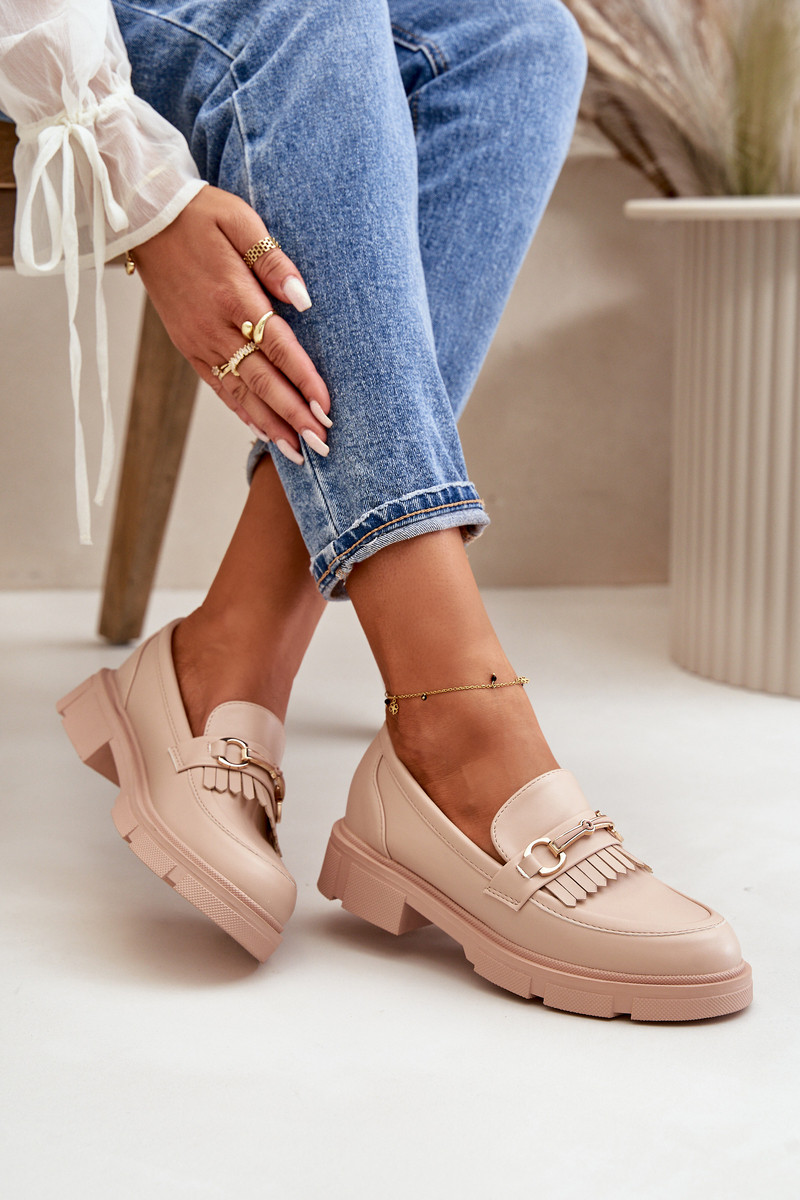 Moteriški mokasinai su ornamentais iš dirbtinės odos smėlio spalvos Tialorae