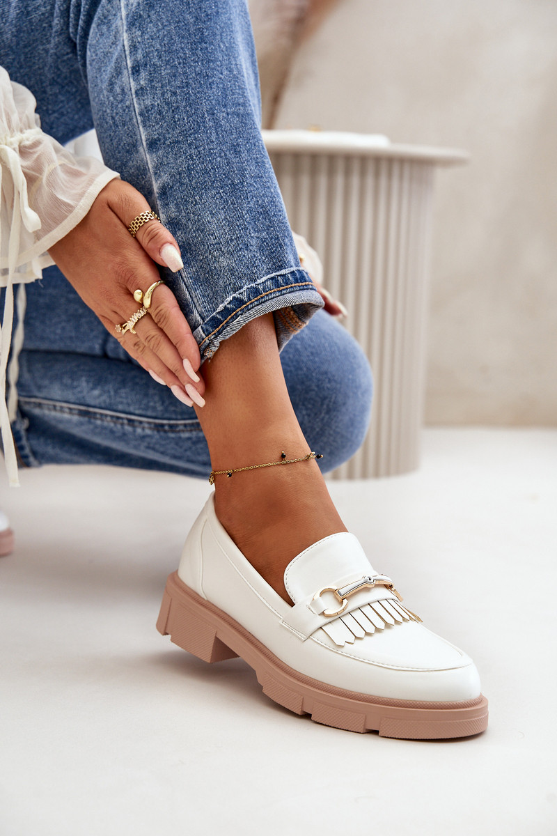 Moteriški mokasinai su ornamentais iš dirbtinės odos baltos spalvos Tialorae