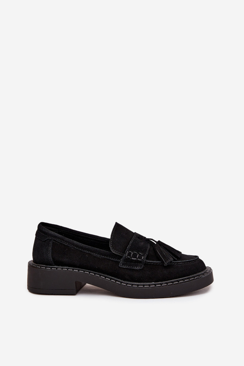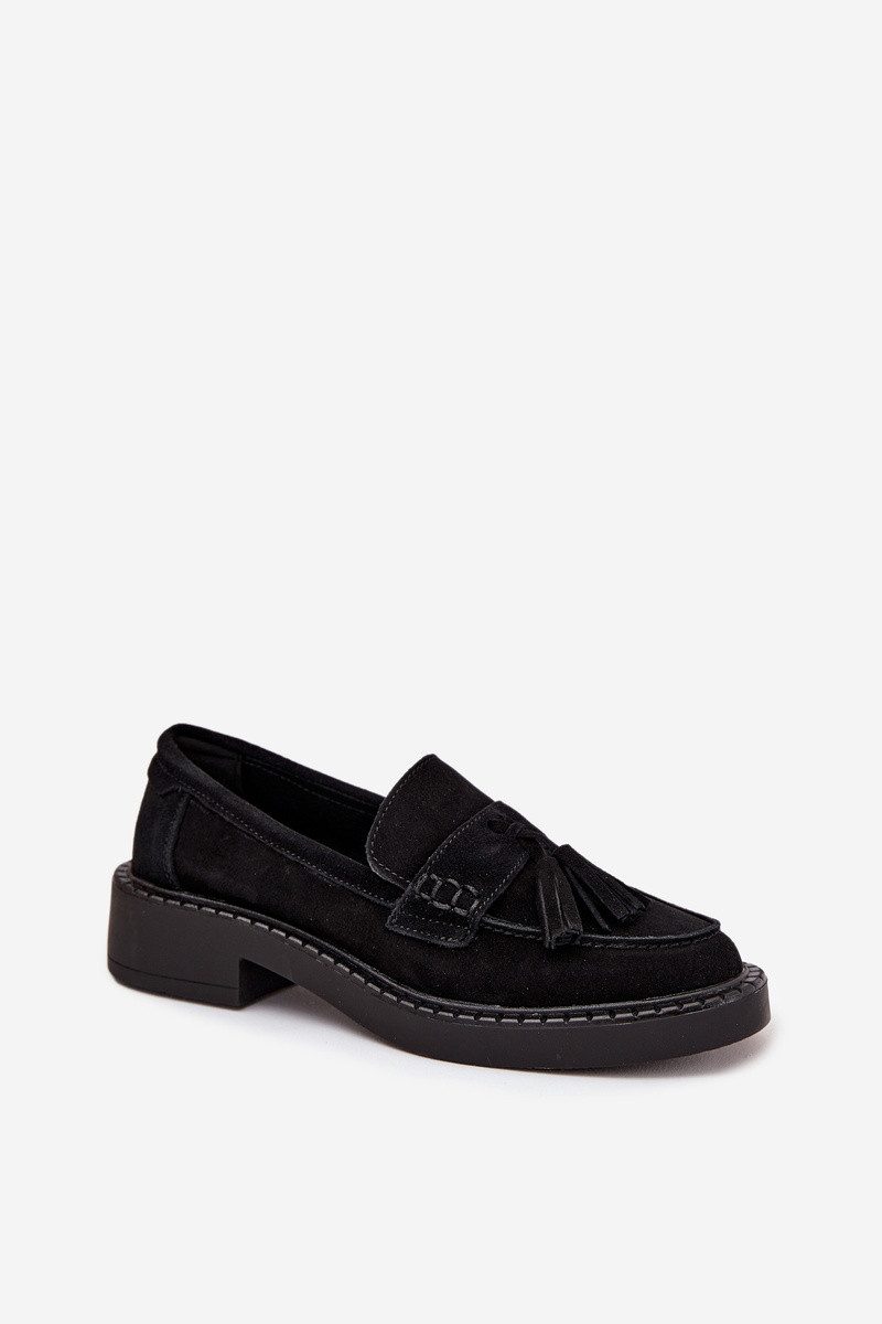 moteriški mokasinai iš zomšos su kutais D&A TIN107 juodos spalvos