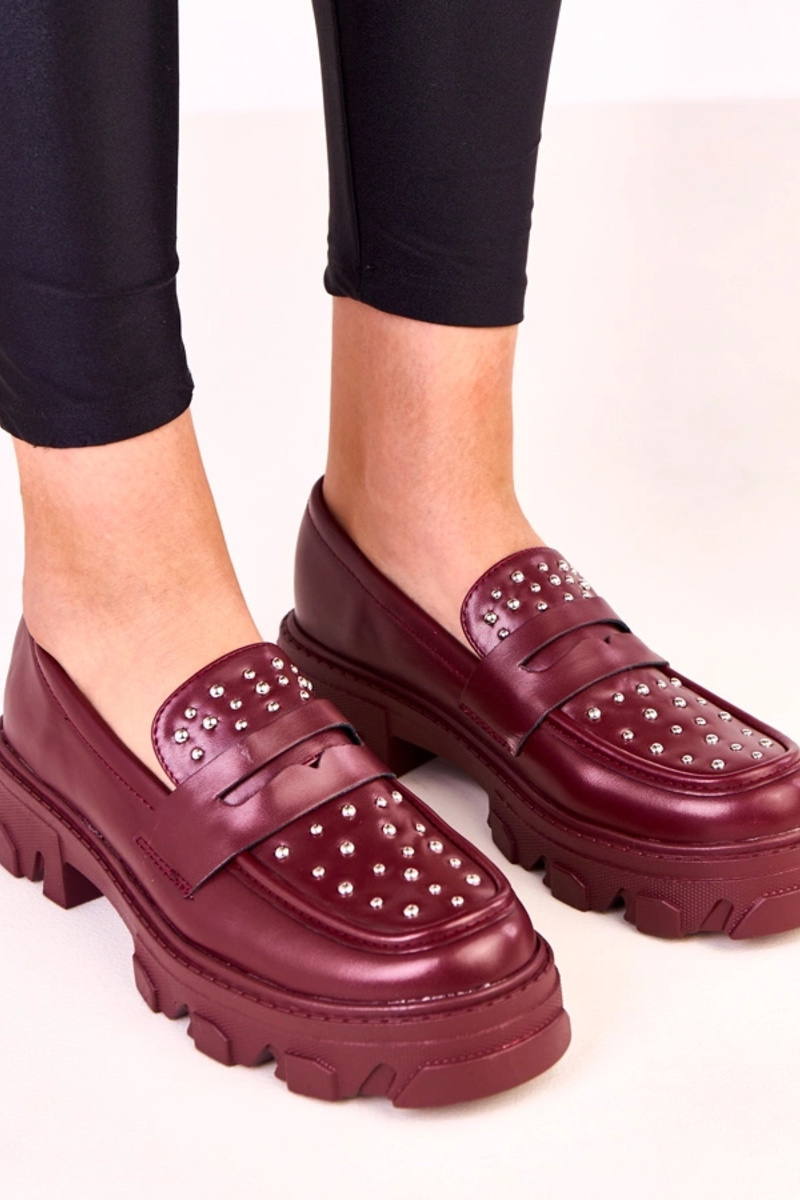 Bordo moteriški mokasinai su kniedėmis Memolis