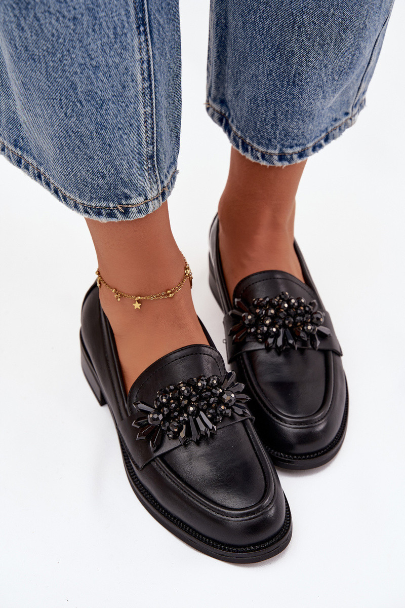batai moteriški mokasinai su ornamentais juodos spalvos Murelle