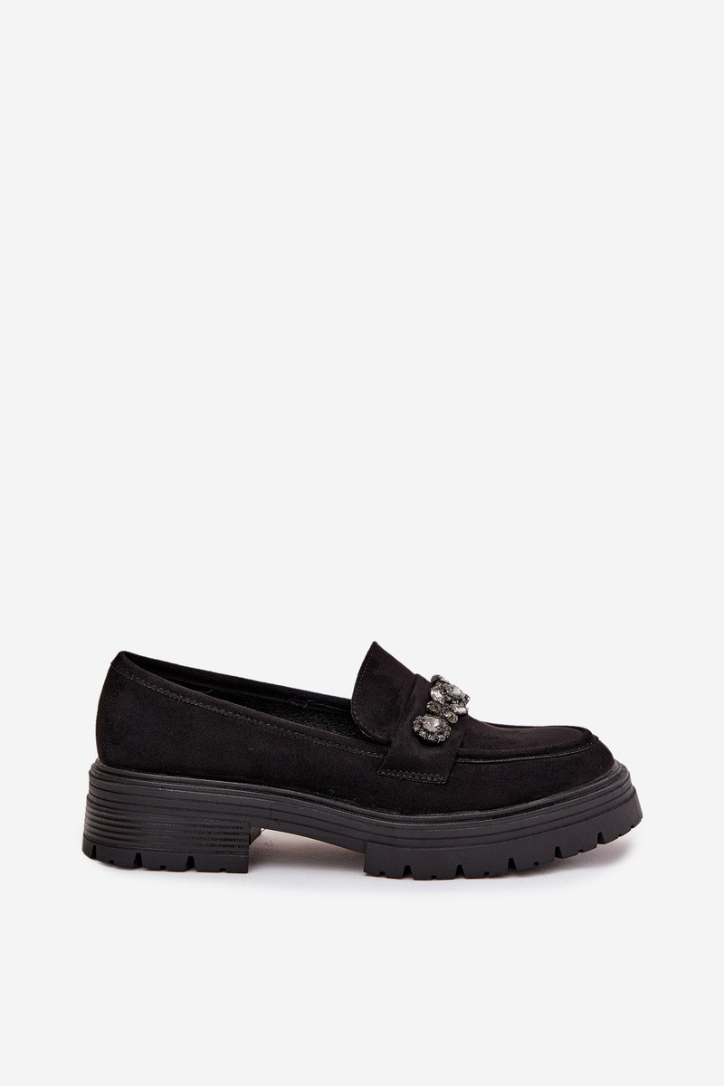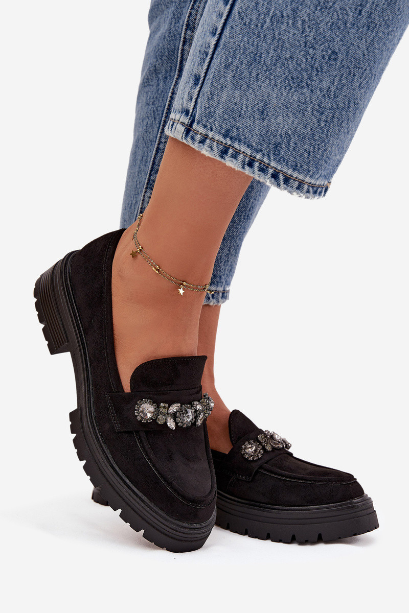 moteriški mokasinai su spindinčiomis akutėmis iš eko zomšosoĮe juodos spalvos Lavisse