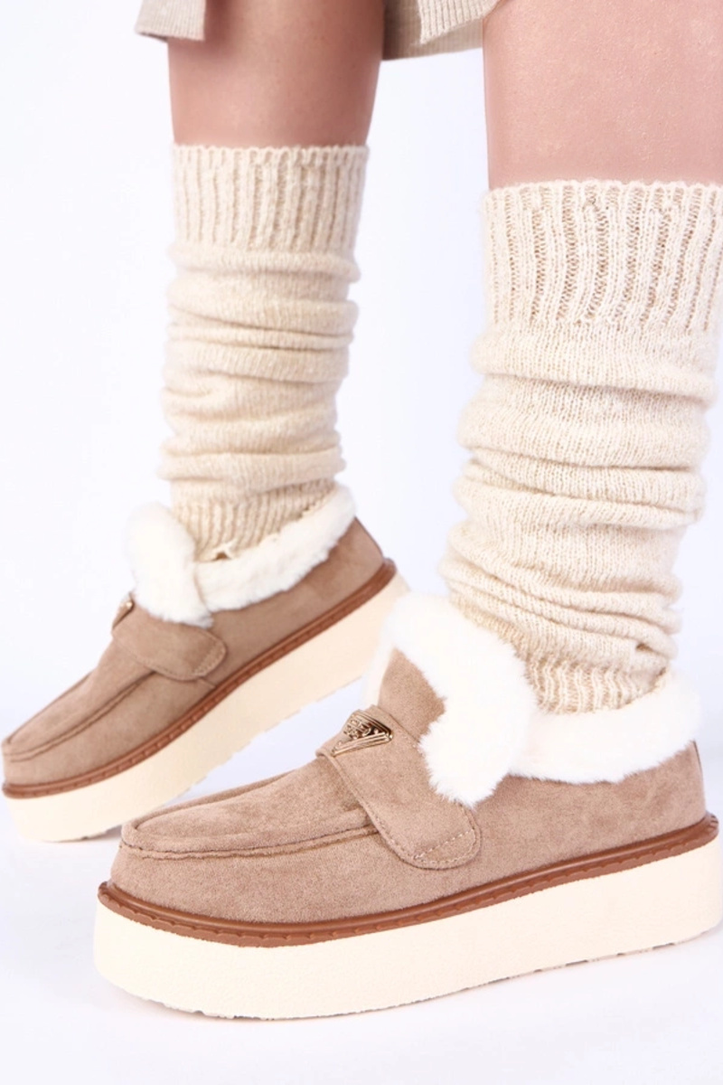 Tamsiai smėlio spalvos mokasinai šilti su kailiu Loafy