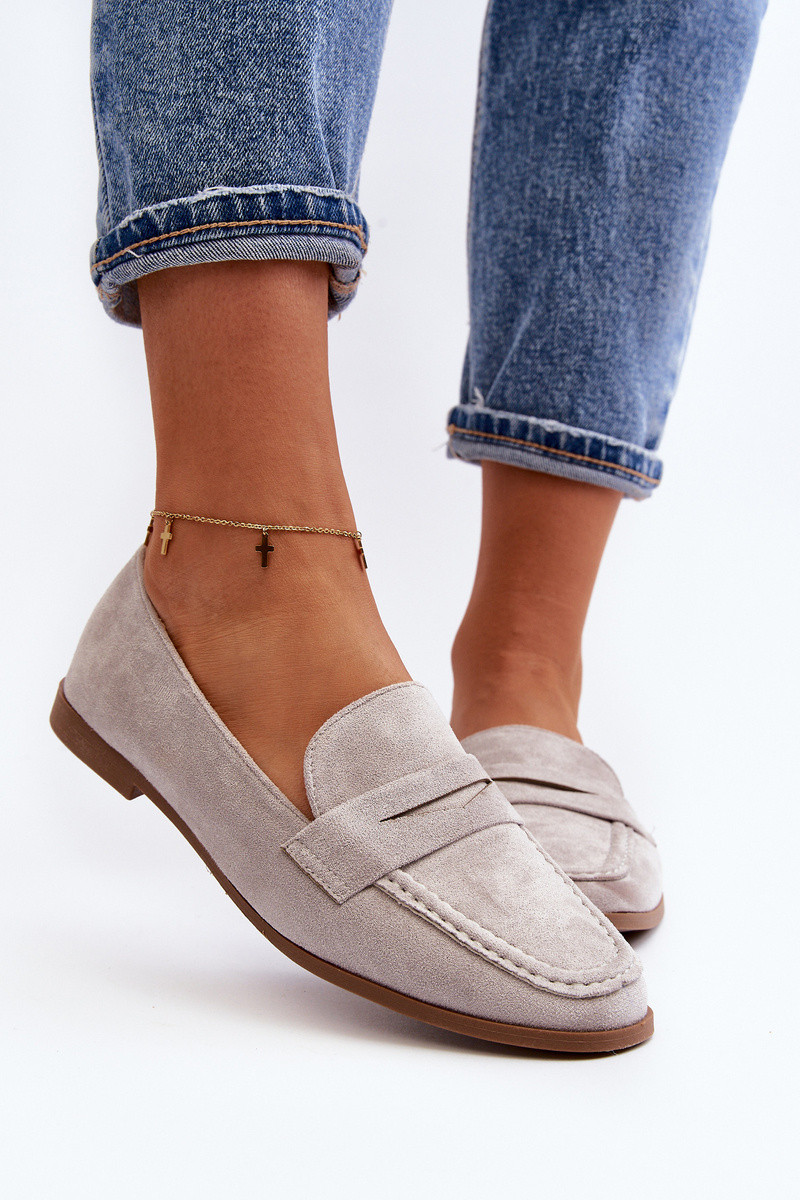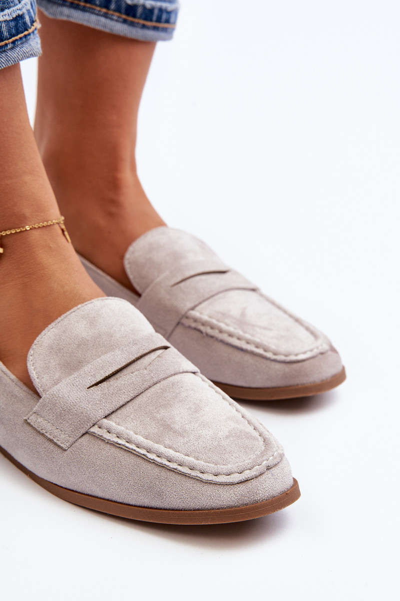 Pilkos spalvos moteriški klasikinio modelio mokasinai "Olevin"