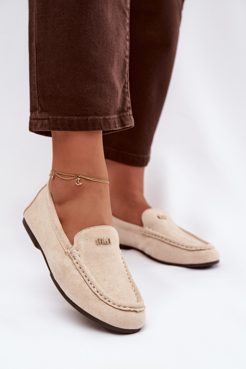 moteriški mokasinaisuTai turižam aukso spalvosm Detalem smėlio spalvos Sarivelle