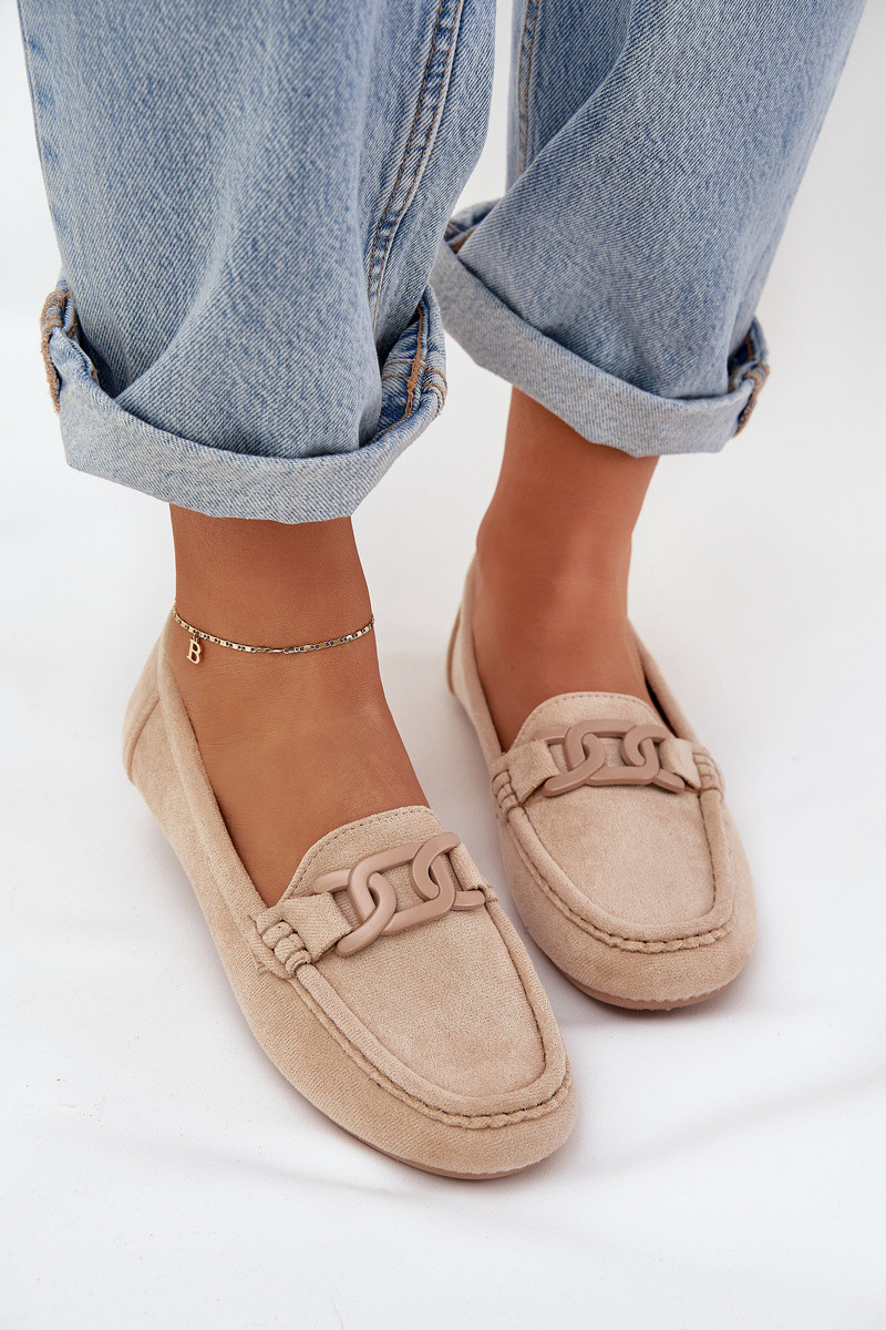 Moteriški dirbtinio zomšo mokasinai su ornamentais smėlio spalvos Seathra