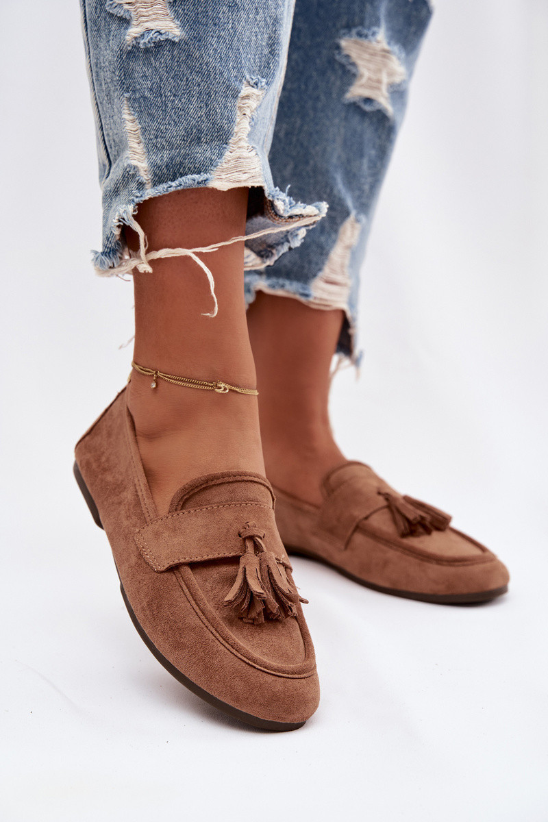 Moteriški rudos spalvos mokasinai su kutais Tai turirilisse