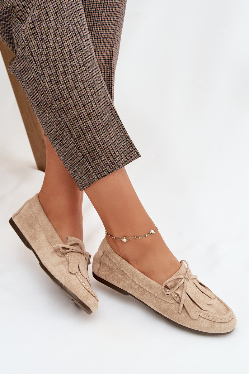 Smėlio spalvos Glorina moteriški mokasinai su stilingomis detalėmis ir kutais