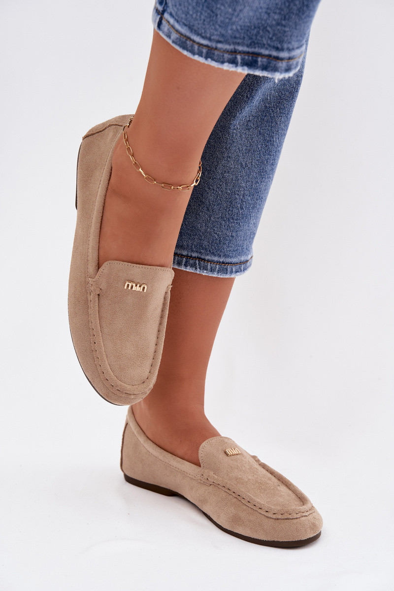 moteriški mokasinaisuTai turižam aukso spalvosm Detalem smėlio spalvos Sarivelle
