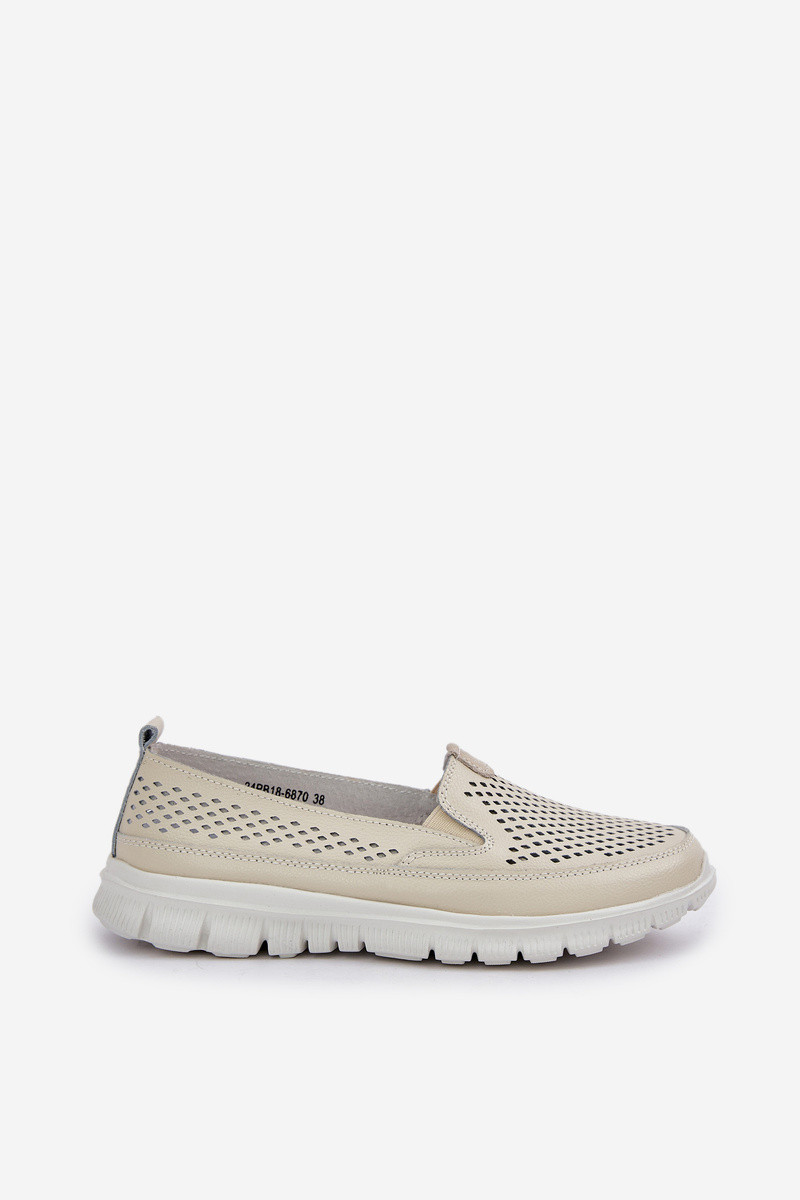 Moteriški odiniai mokasinai su ažūro elementais ant platformos smėlio spalvos Tanelora