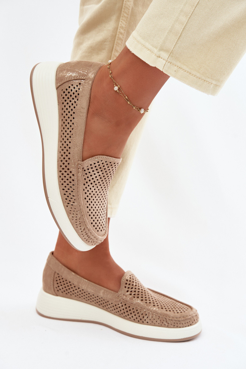 Moteriški mokasinai su aužūro elementais Sergio Leone MK097H smėlio spalvos