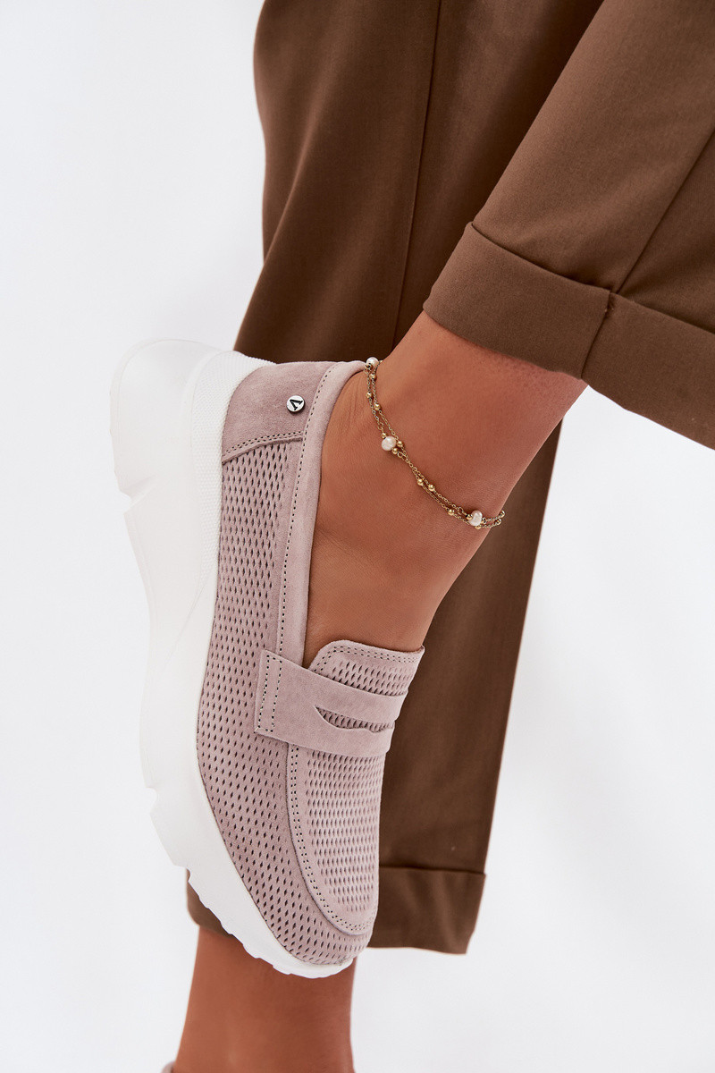 Moteriški mokasinai iš natūralios zomšos su platforma Vinceza 79626 smėlio spalvos