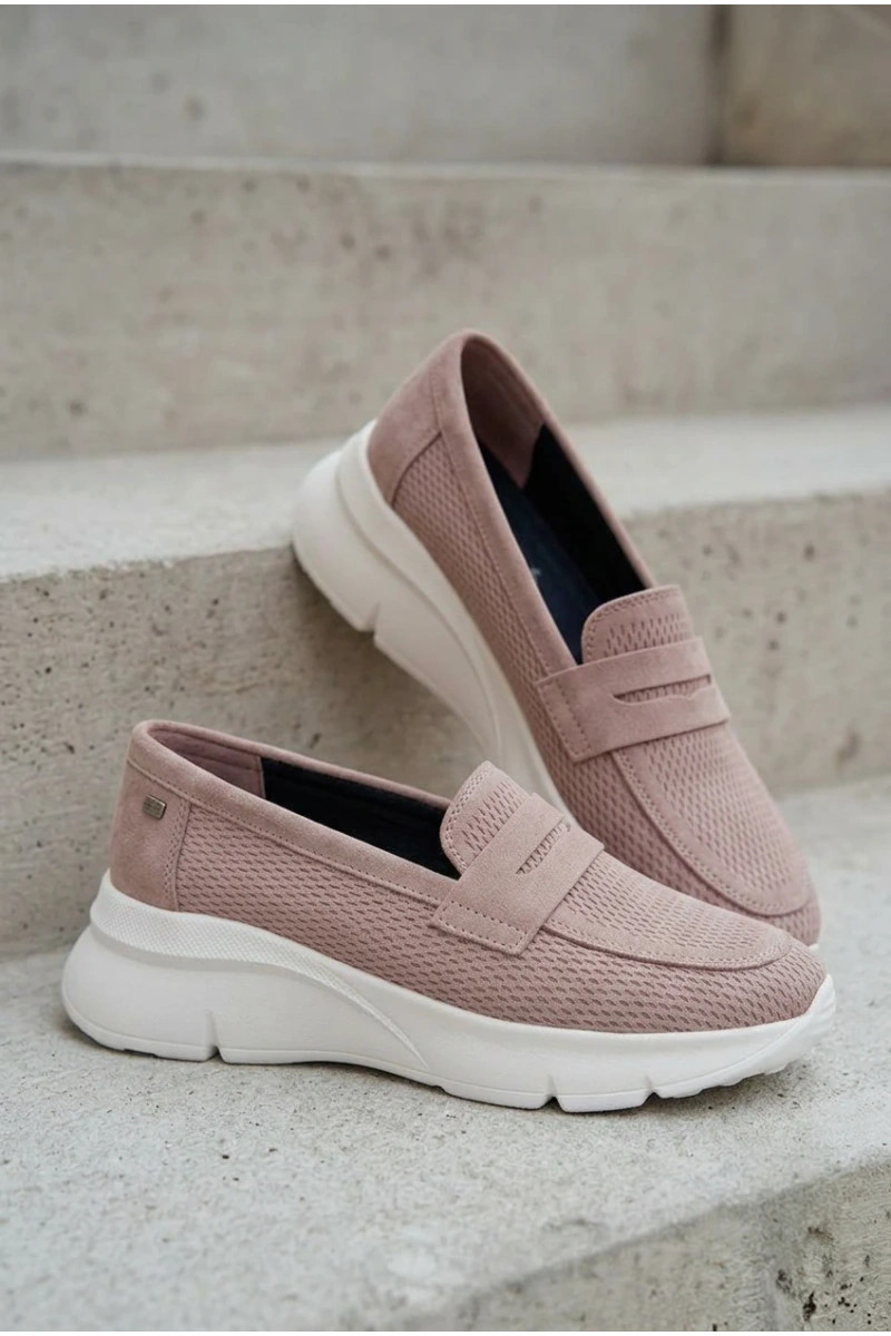 Moteriški mokasinai iš natūralios zomšos su platforma Vinceza 79626 rožinės spalvos