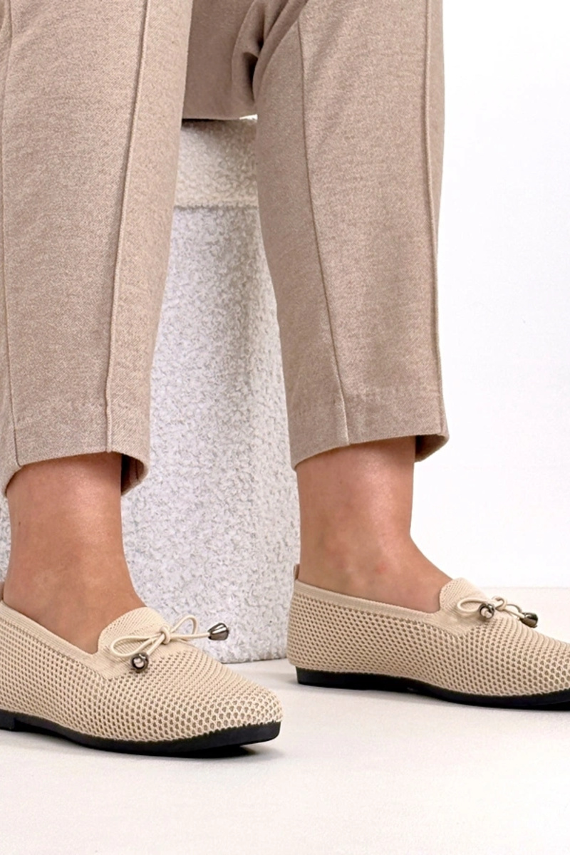 Smėlio spalvos audiniai mokasinai su kaspinėliu Aubrey