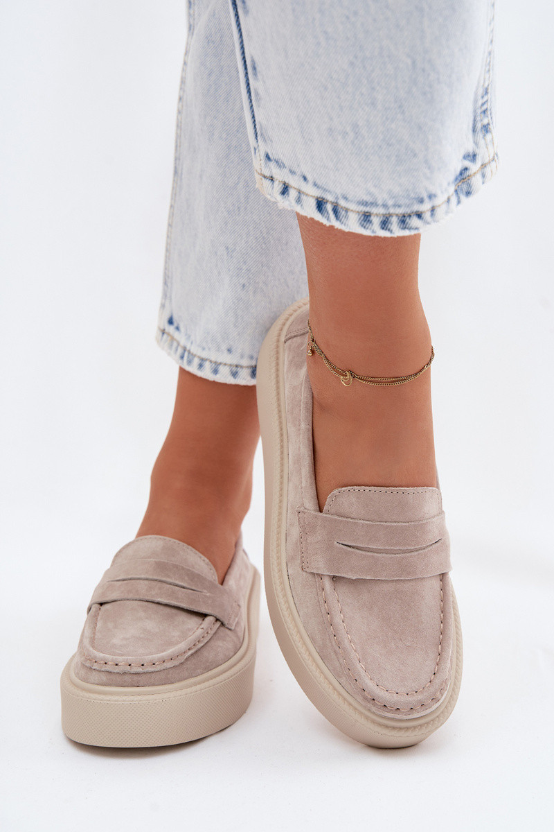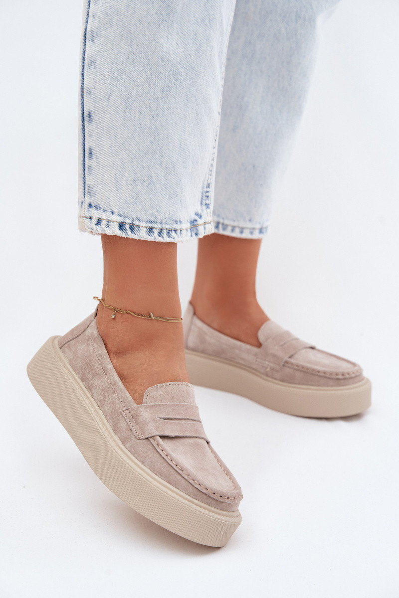 Smėlio spalvos dirbtinės zomšos mokasinai ant platformos Vinceza 79594