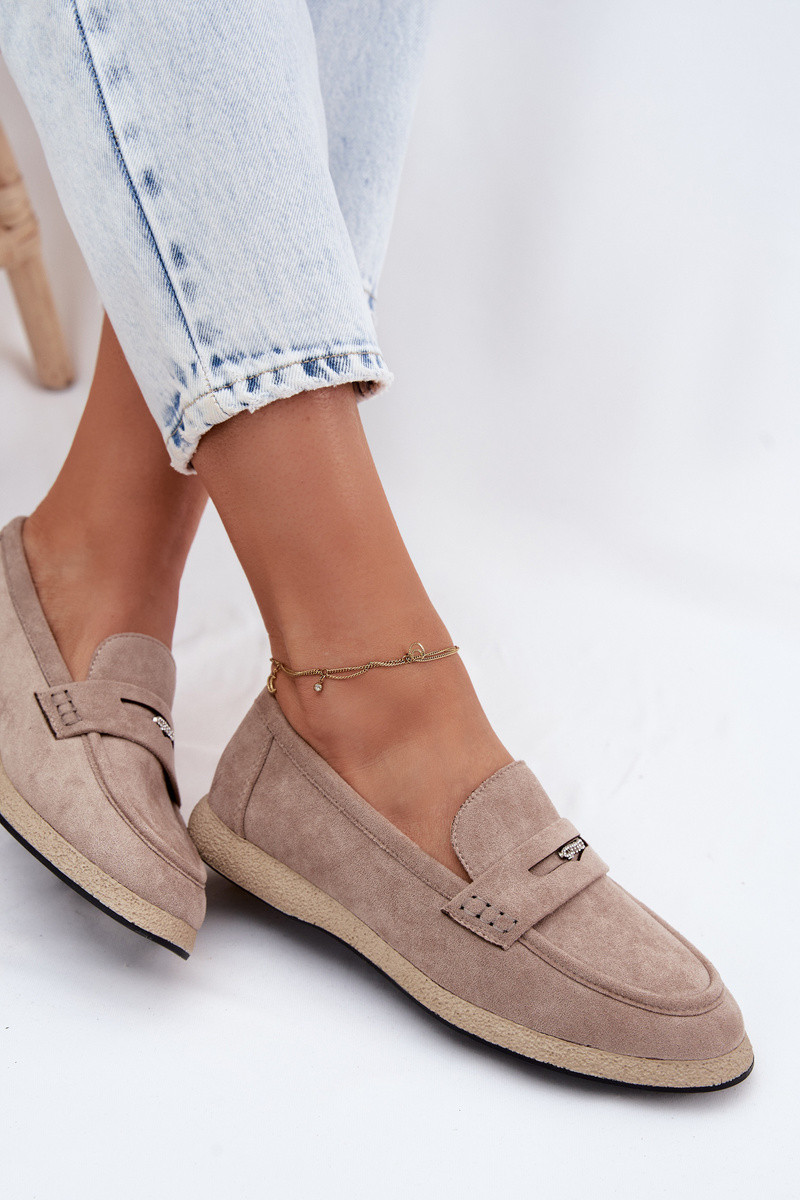 VINCEZASmėlio spalvos dirbtinės zomšos moteriški mokasinai Vinceza 62273