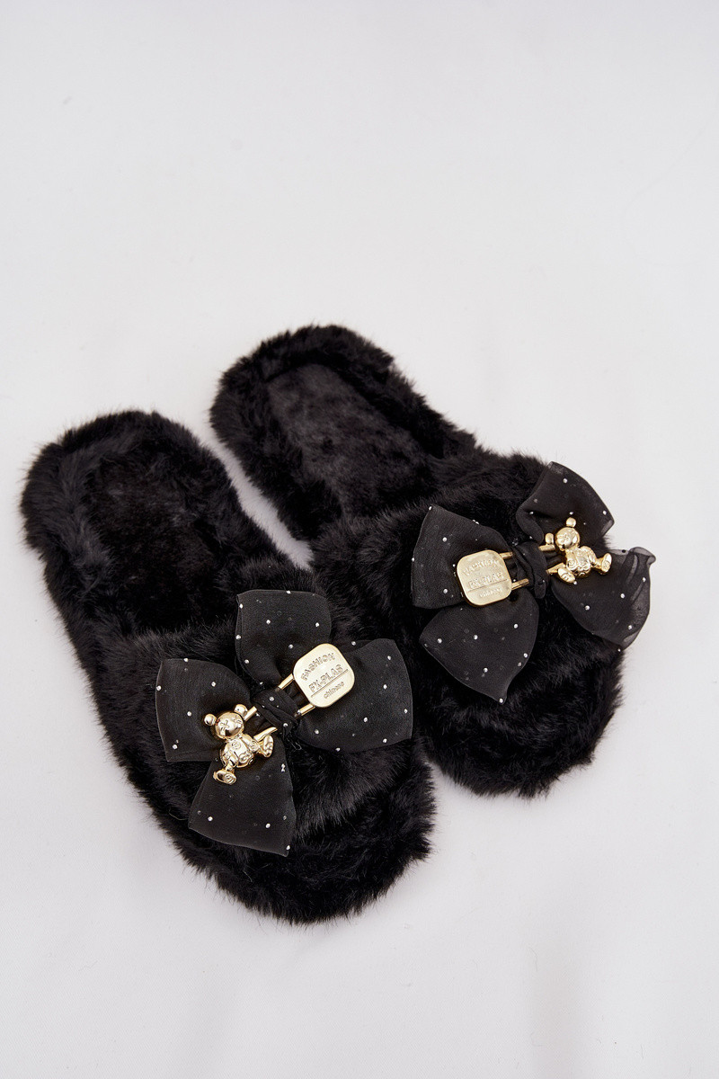 su kailiuku Šlepetės Moteriškas su kaspinais I Złotą Ozdobą juodos spalvos Nolara