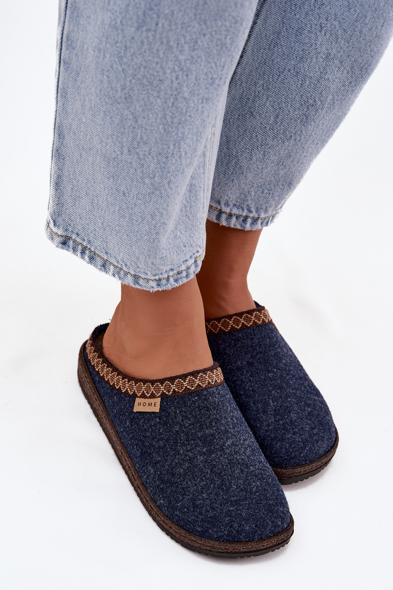 Šlepetės moteriškos su haftem Inblu NL000009 tamsiai mėlynos spalvos