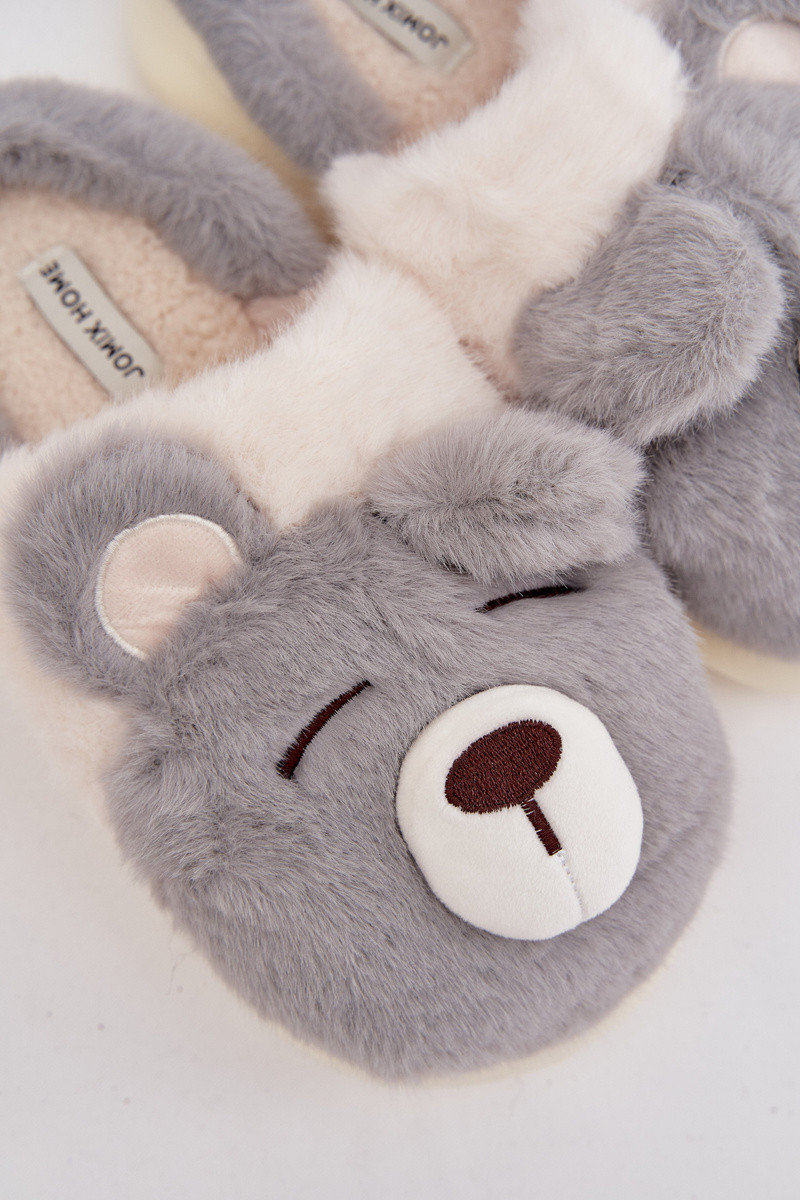 Pilkos spalvos šlepetės su kailiuku ir tema Misia Galine