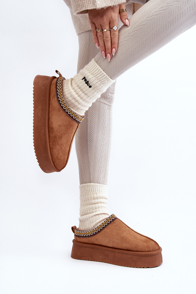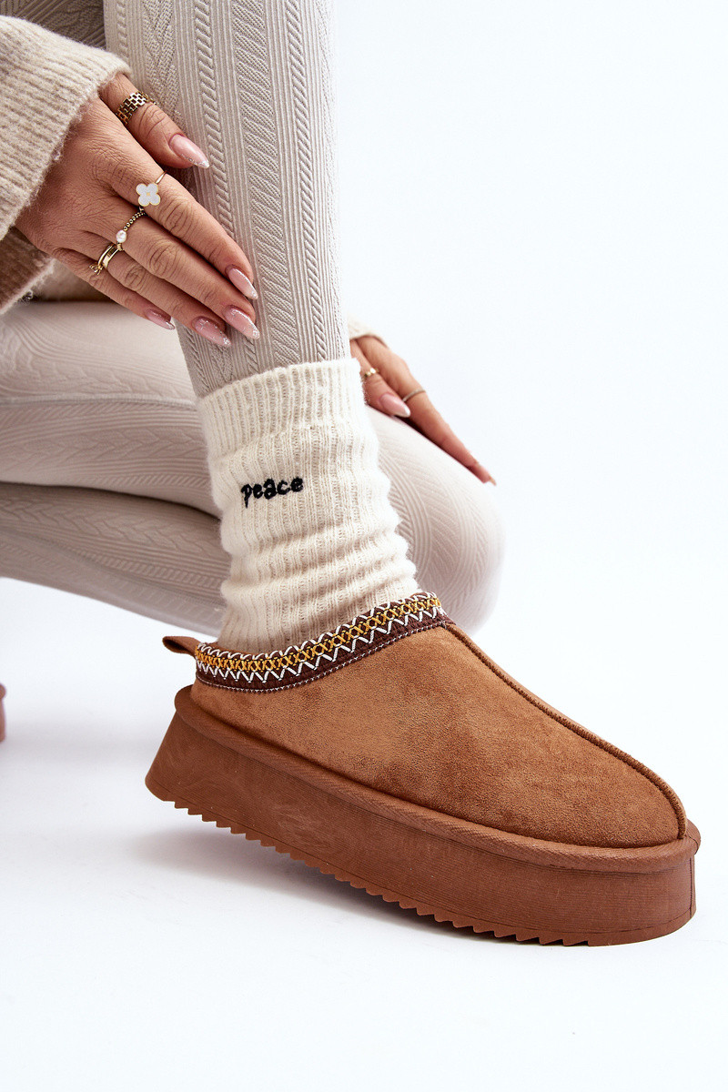 Šlepetės Ant storo padosuiš eko zomšosu rudos spalvos Sylva