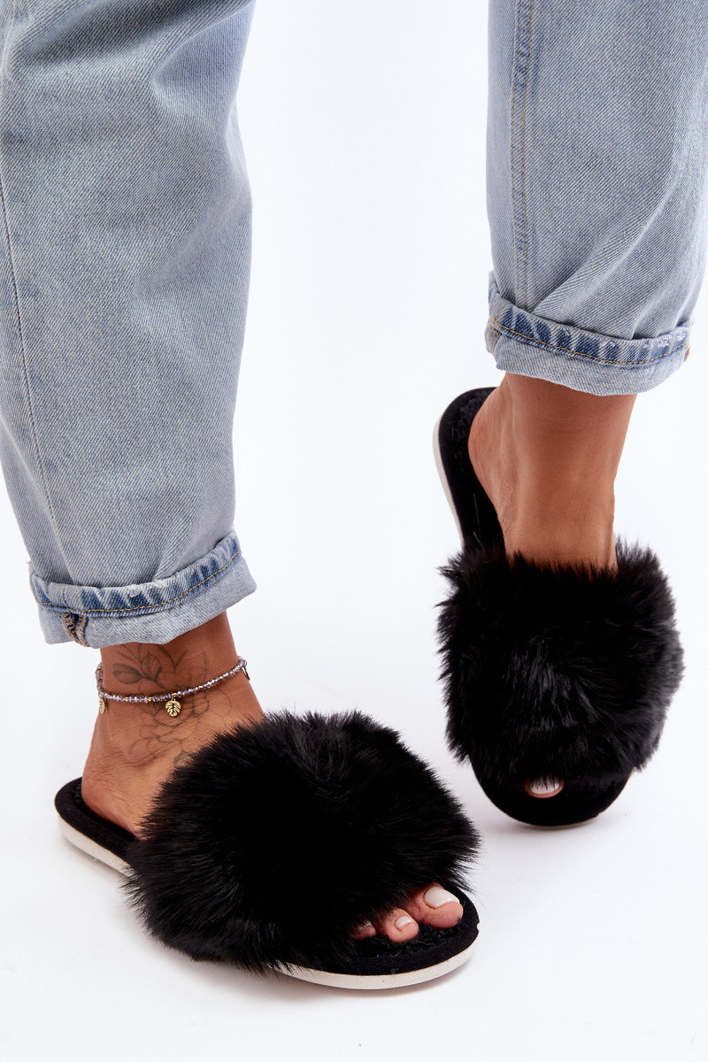 Moteriškos šlepetės su kailiuku juodos spalvos Vienitta