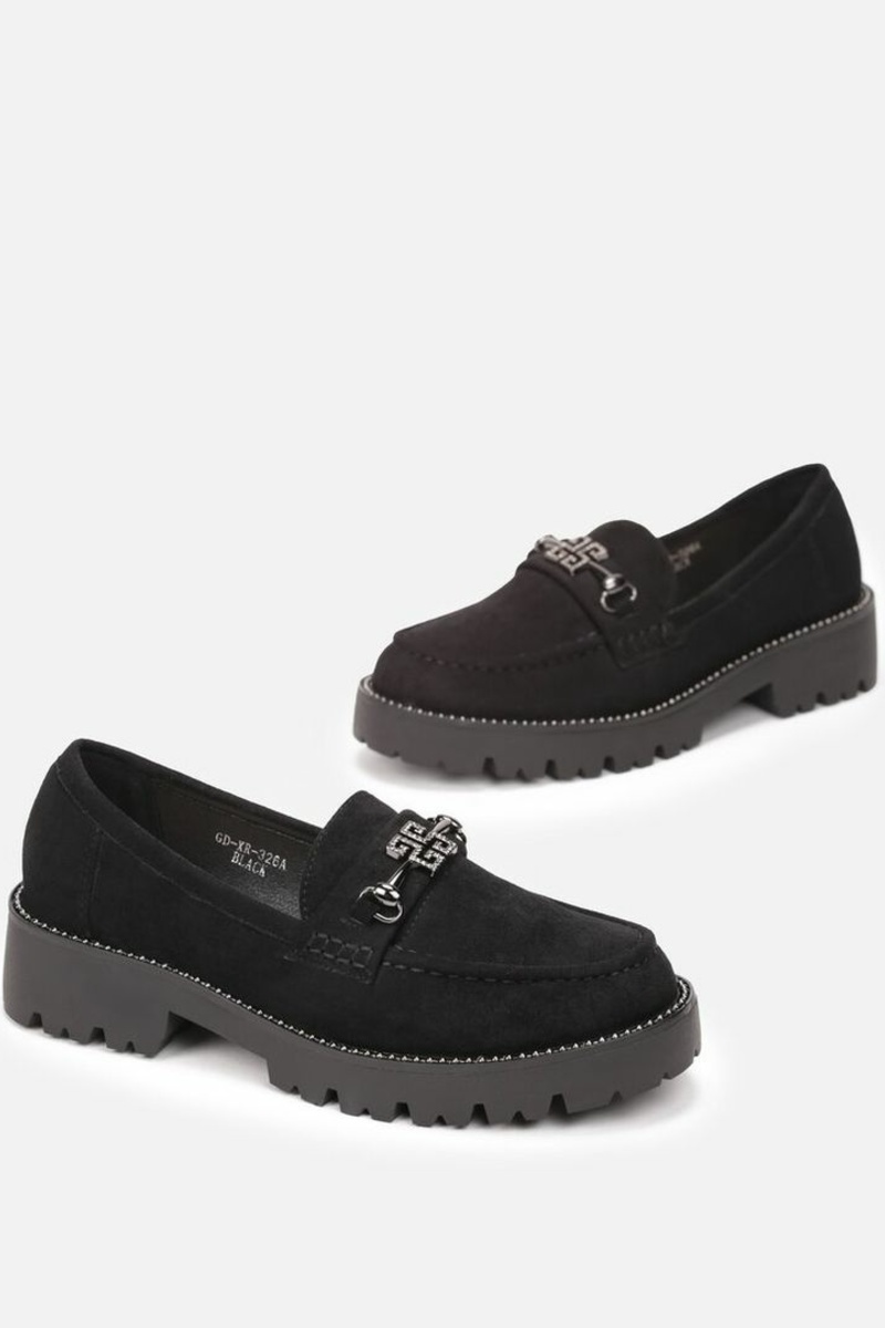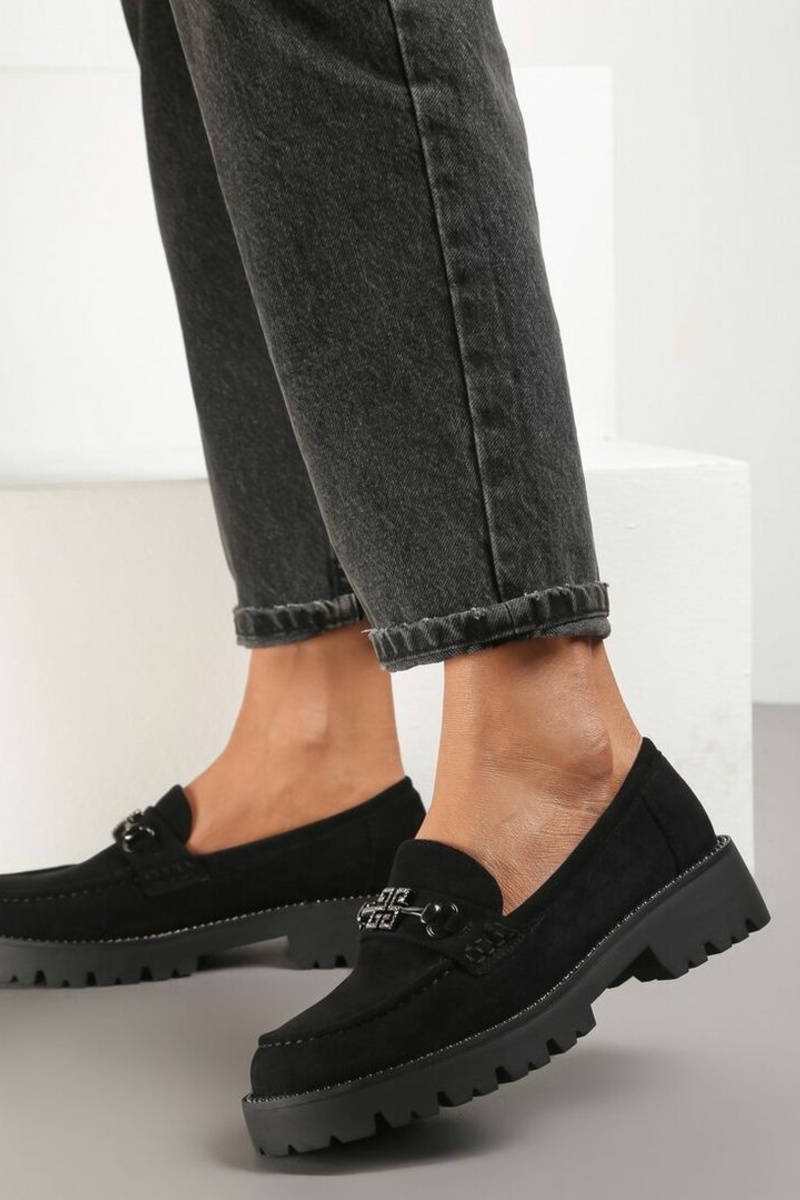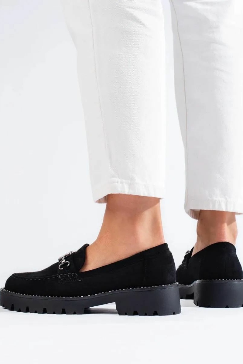 Mokasinai su masyviu kulnu Shelovet juodos spalvos